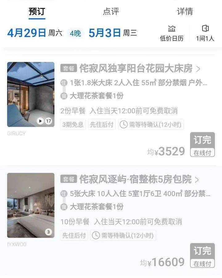 在携程平台上,大理市精品民宿榜前十名,大部分高端房间已售罄,其中不乏价值七八千甚至上万元的海景房。