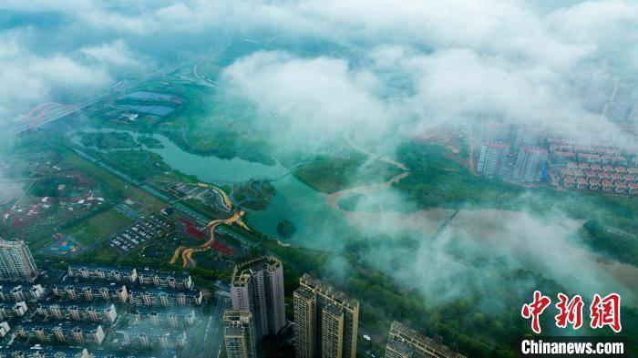 4月14日,航拍雨后的江西省新余市孔目江国家湿地公园、仰天岗国家森林公园、新余城区、高新区等地云雾缭绕,房屋、道路、森林、公园等在云雾中忽隐忽现,美如仙境。近年来,江西省新余市坚定践行“绿水青山就是金山银山”理念,完善绿色低碳循环发展经济体系,统筹山水林田湖草沙一体化保护和修复,推进生态环境治理体系和治理能力现代化,推动落实全面建设美丽新余各项任务取得实效。