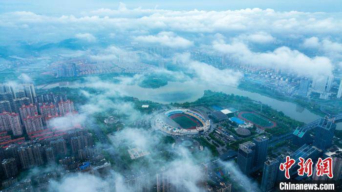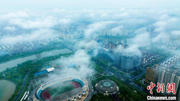 航拍江西新余体育中心上空云雾缭绕,美如仙境。郭锋杰 郭锋杰 摄