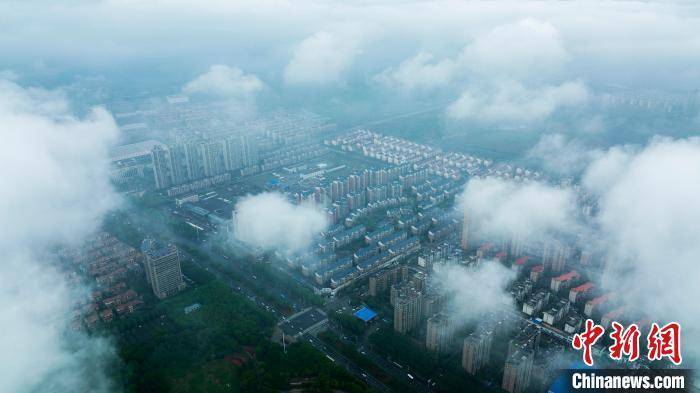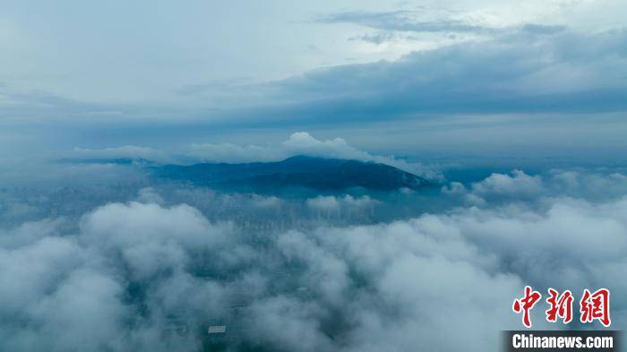 航拍江西新余高新区上空云雾缭绕,美如仙境。 郭锋杰 摄