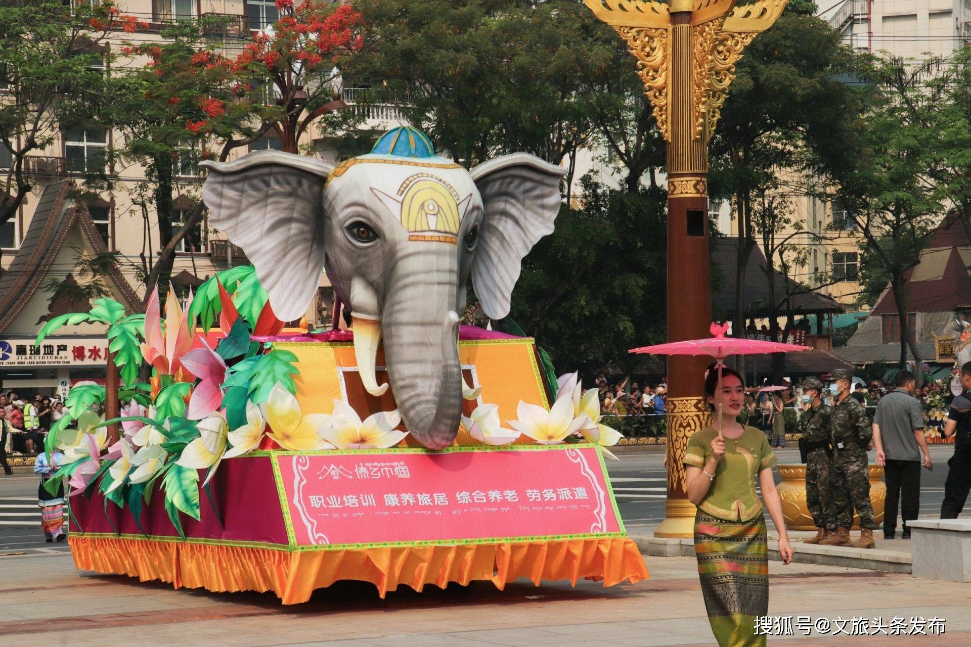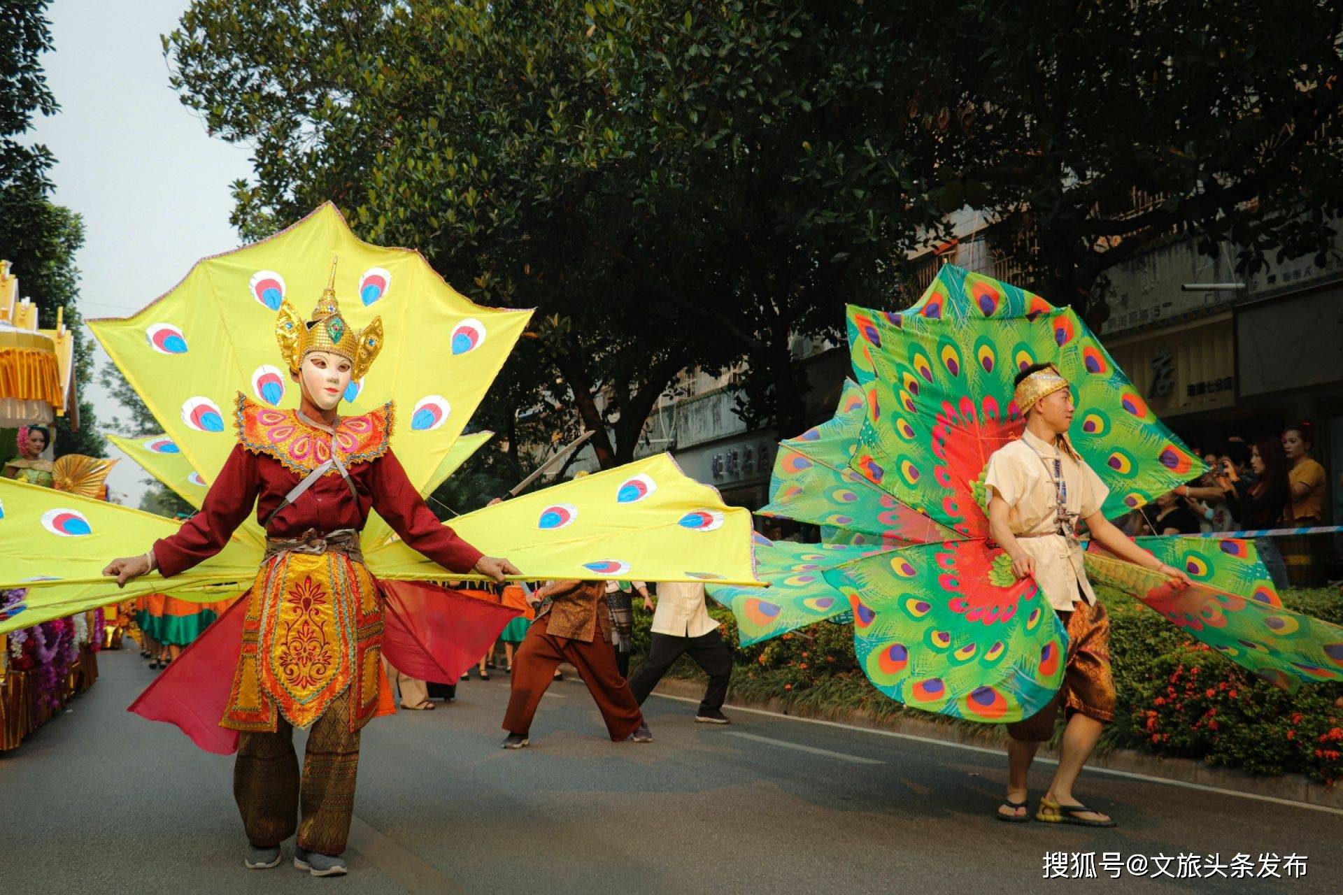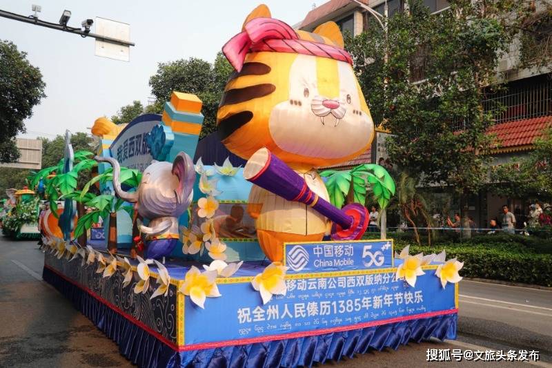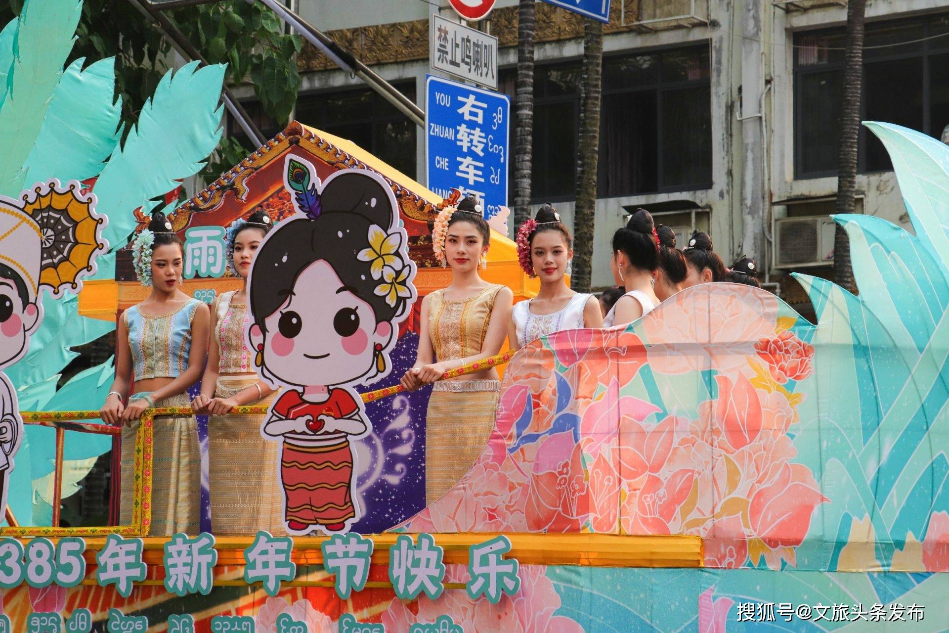 4月14日上午,西双版纳傣历1385年新年节民族民间传统文化大游演暨“澜·湄龙舟”展演在景洪城区举行。身着盛装的演员载歌载舞展示西双版纳优秀民族民间传统文化,与广大市民游客一同欢度泼水节。