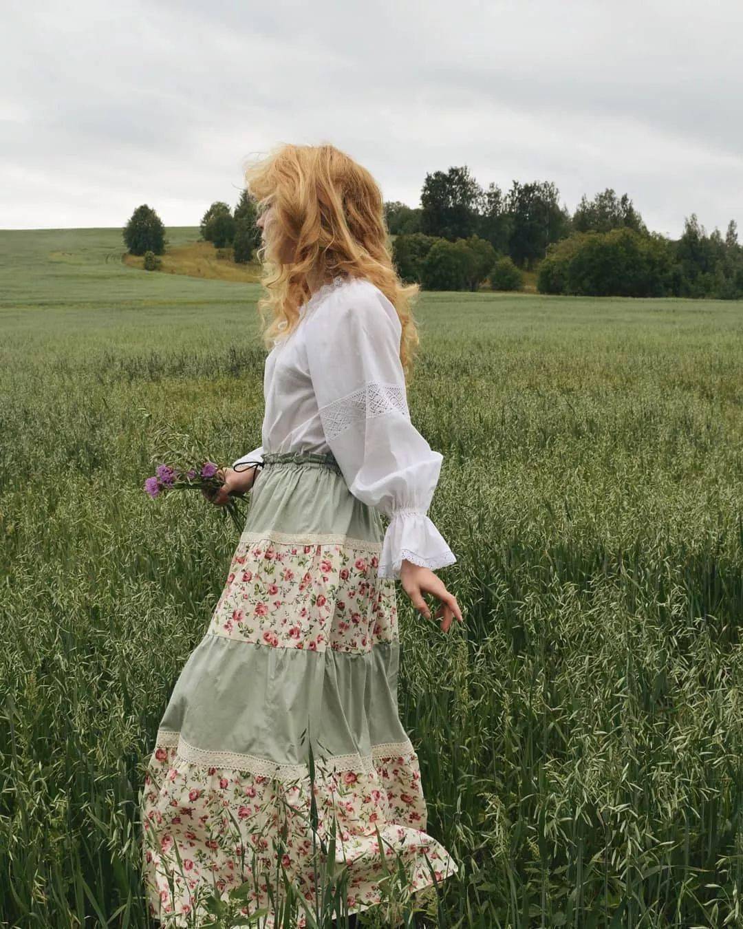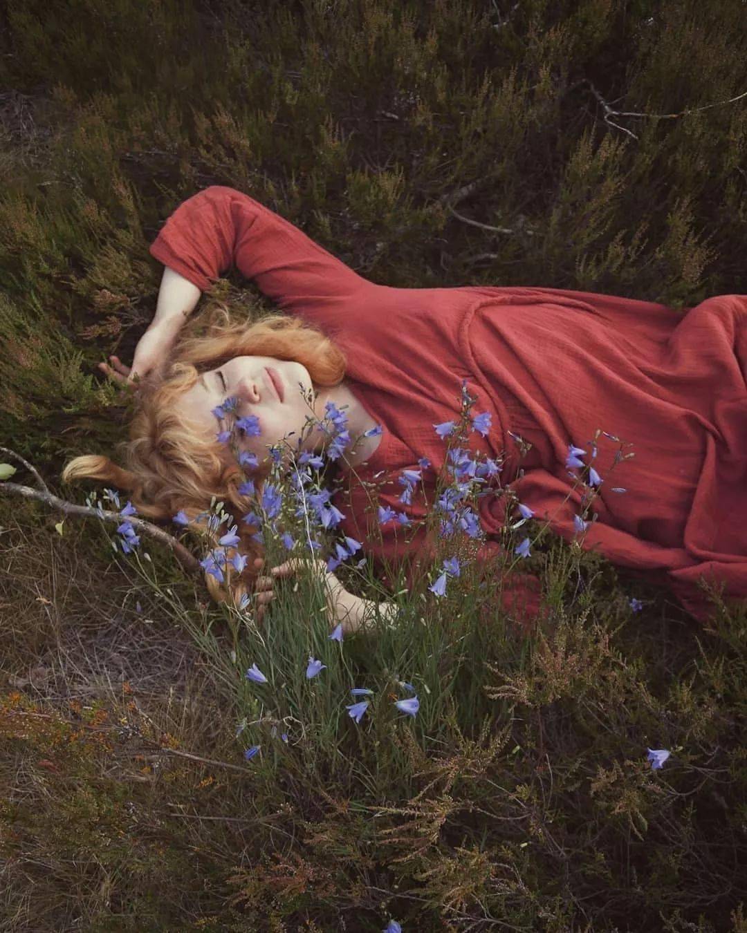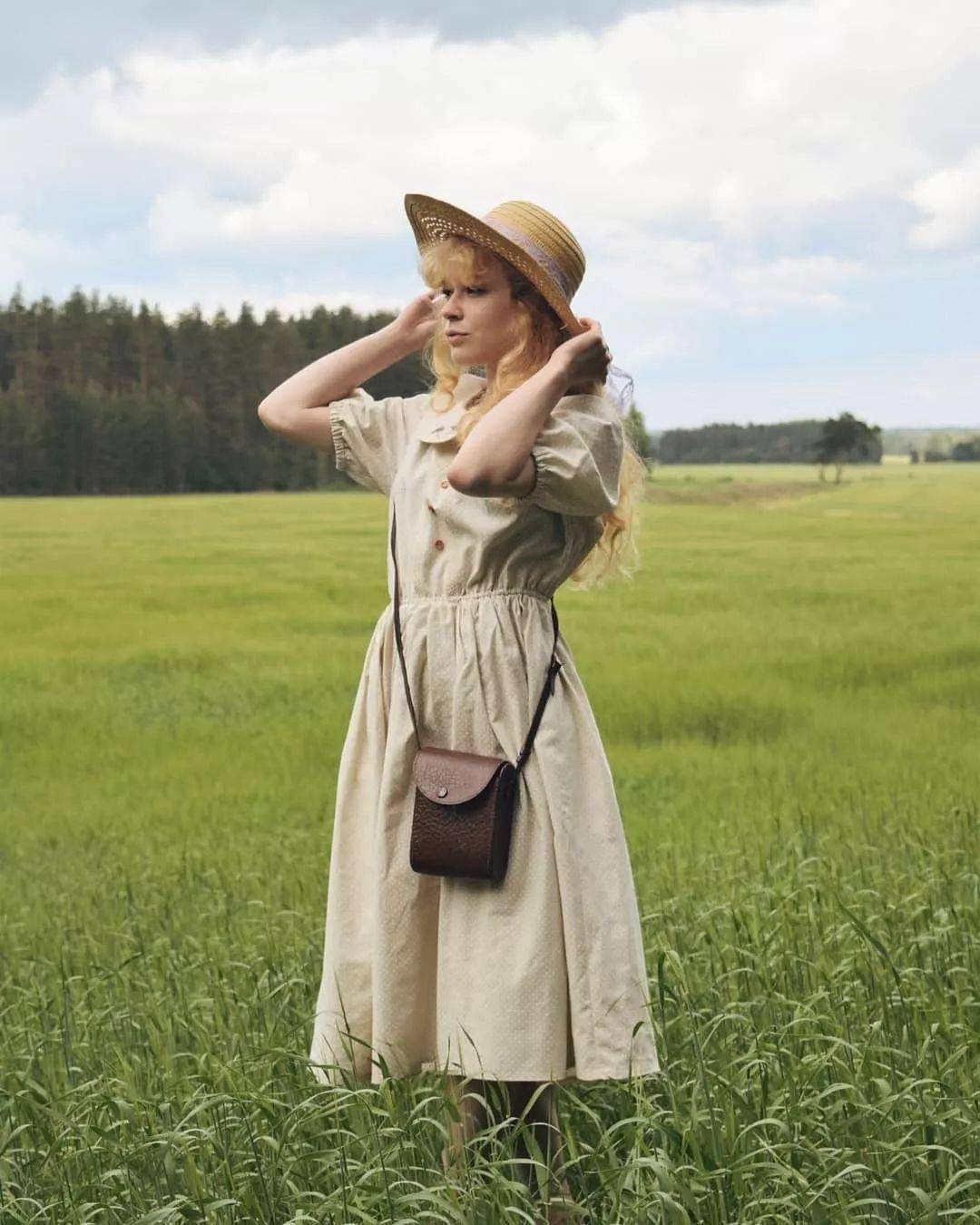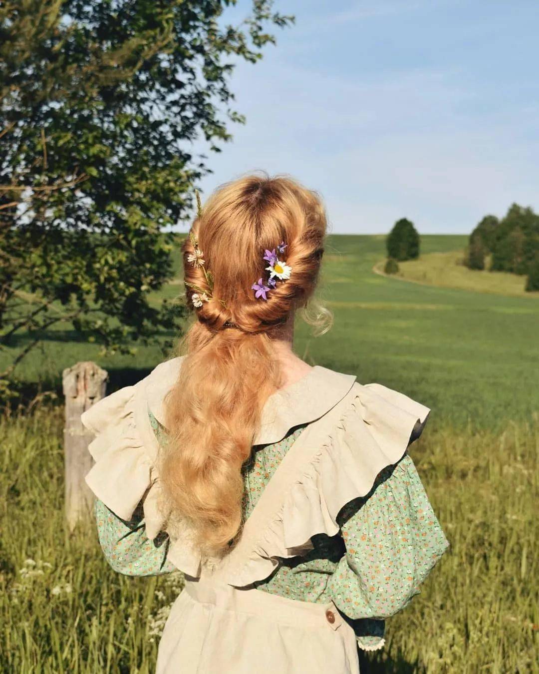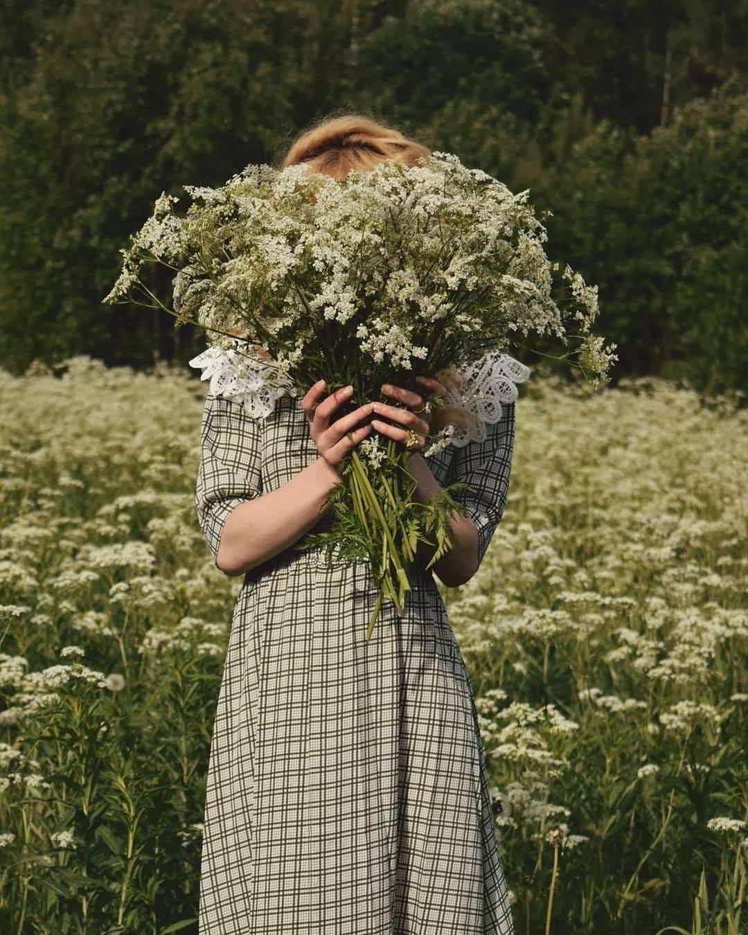 野花野草肆意生长,微风吹过Ellen蓬松柔软的金发,随手采撷一些别于发间,当真是和自然浑然一体的小仙女。