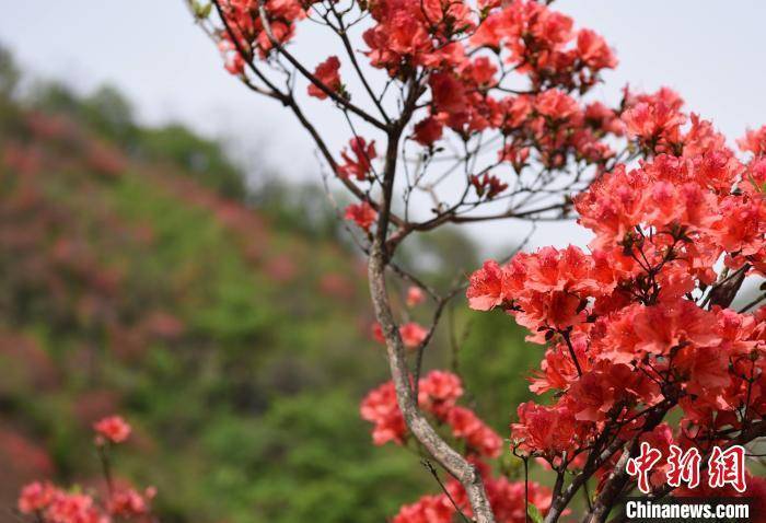 中新网九江4月15日电(郑文斌 胡传丰)芳菲四月,江西九江永修县万亩杜鹃花竞相绽放,吸引众多游客前来赏花拍照,“带火”当地春季乡村游。