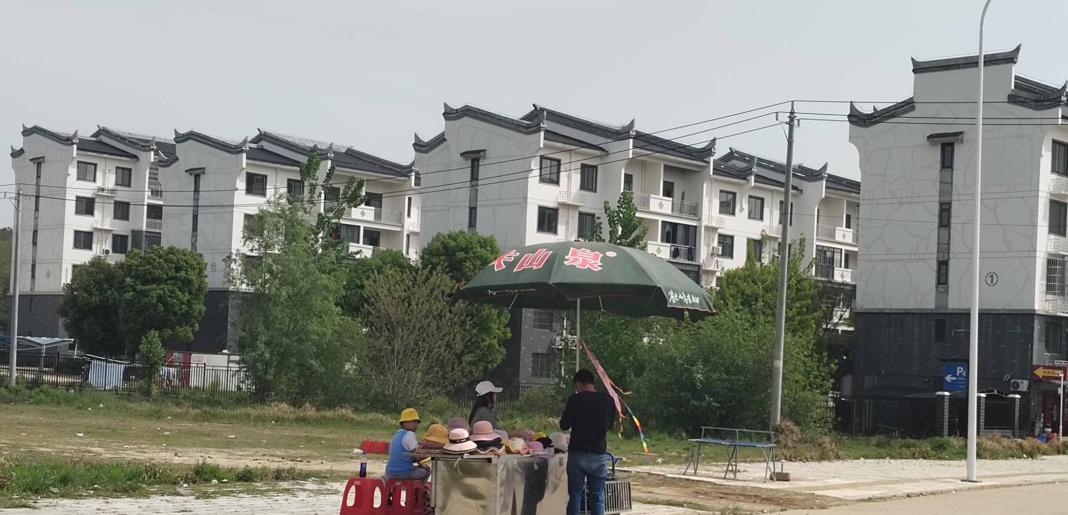 为开发木兰草原而建设的还建小区,现场观察,都是一水的5层建筑,白色外墙,徽式屋顶(黄陂最喜欢的新农村房屋外观),应该有500多户人家。