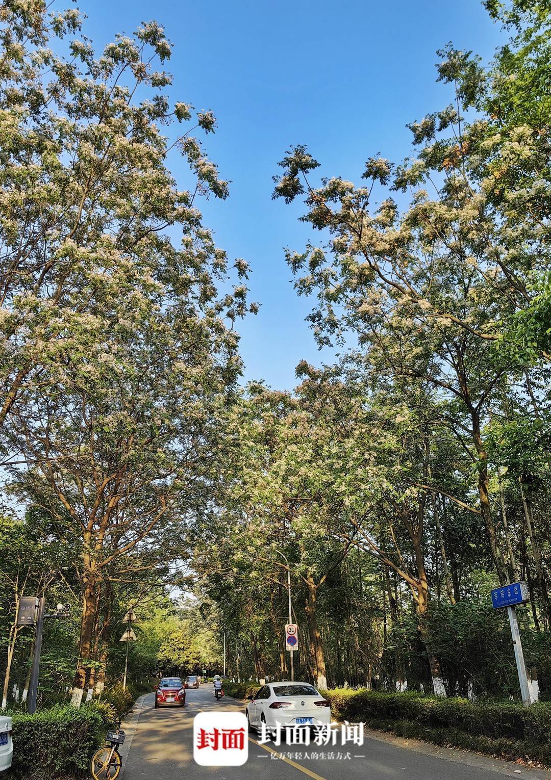 4月15日,成都沙河边萃锦东路两旁的楝树盛开,花朵很小,淡雅的紫色花朵,成团成簇在道路上空搭起一条“花蓬”,汽车在花团下行驶,甚至是好看,春天里的成都,处处都是风景。