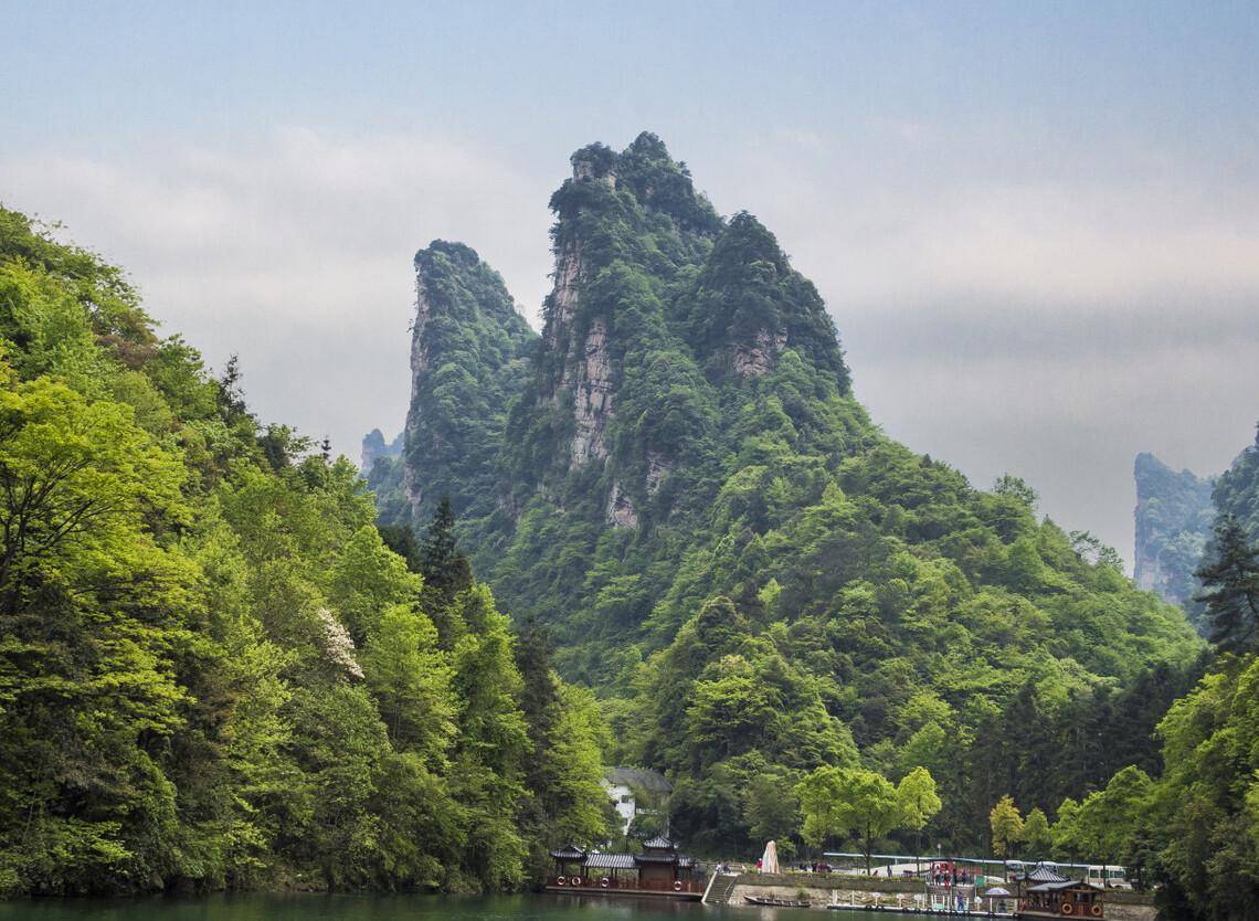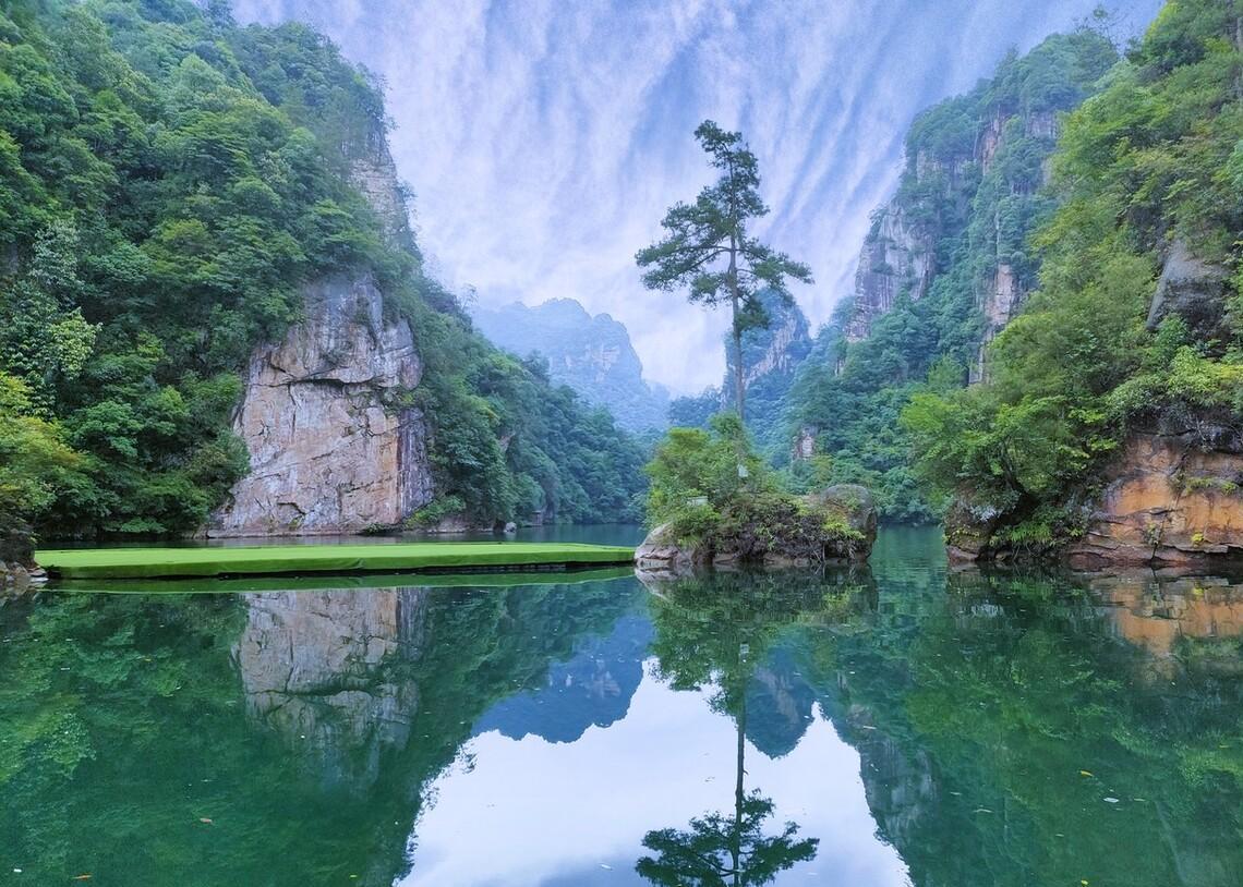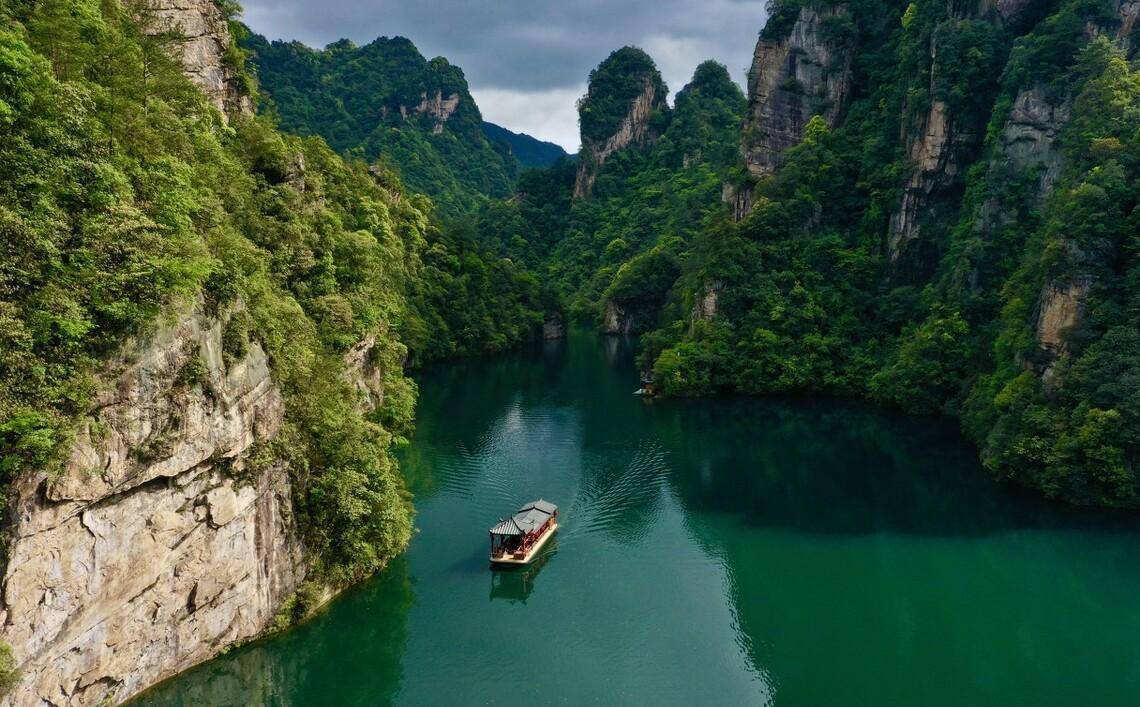 人间瑶池宝峰湖,是张家界的一个堰塞湖,有着罕见的高峡平湖绝景,被称为“世界湖泊经典”,山美水美,领略奇秀风光。宝峰湖像一块碧玉镶嵌在群山之中,溪流飞瀑不断,湖水清澈倒映着群山,水因山而绿,山得水更青,风光旖旎,美不胜收。