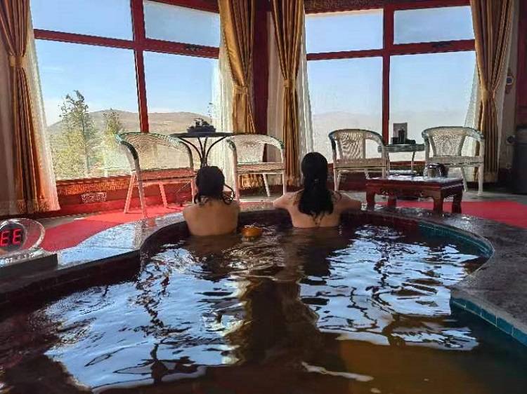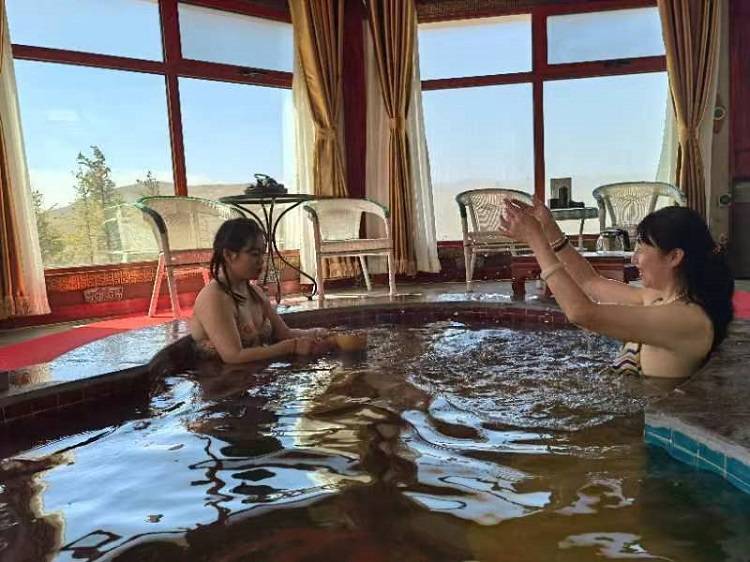 4月15日,记者在现场看到,蒙元风情的装修风格让人耳目一新,一包一温泉,既温馨又雅致,还保证了私密性,热气蒸腾中,不少游客或泡泉或在躺椅沐浴阳光。
