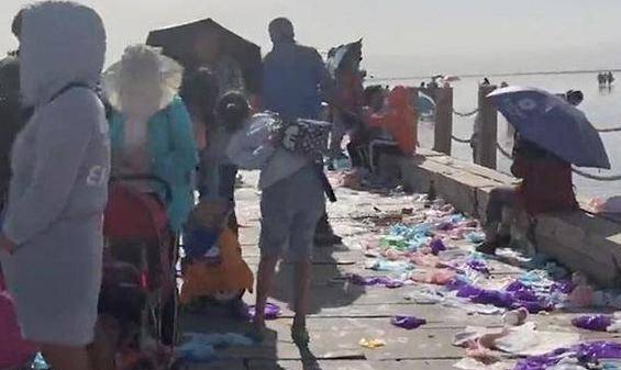 但是最近正值盐湖的旅游旺季,却被爆来到盐湖的许多游客都把自己穿过的鞋套直接扔在地上,完全无视垃圾桶的存在,因此景区的环卫工人,如今为了将这些遍地的垃圾清理干净,一天的工作量居然要13个小时之久。