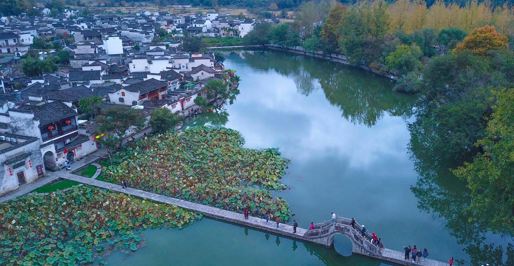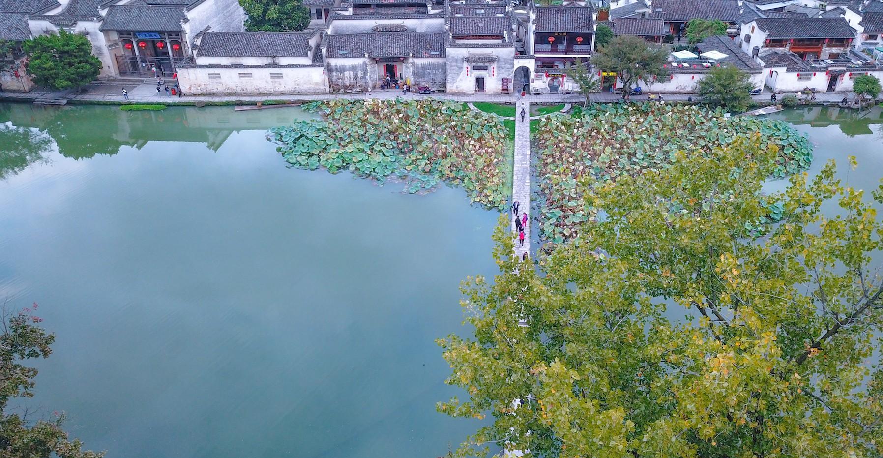 宏村最经典的画面大概就是水边青瓦白墙的徽派建筑倒映其中,这一片水就是在宏村正中央的月沼湖,也是宏村的点睛之笔。利用上游流经宏村的河水引水成湖。牛形水系的核心就是现在的月沼,它是整个水系的“牛胃”,当地人也称“牛小肚”。南湖也是宏村的精华,仿西湖平湖秋月式样开凿的人工湖,穿湖而过的画桥是南湖的标志性景观。其中穿湖而过的画桥就是《卧虎藏龙》里李慕白牵马走过的地方。