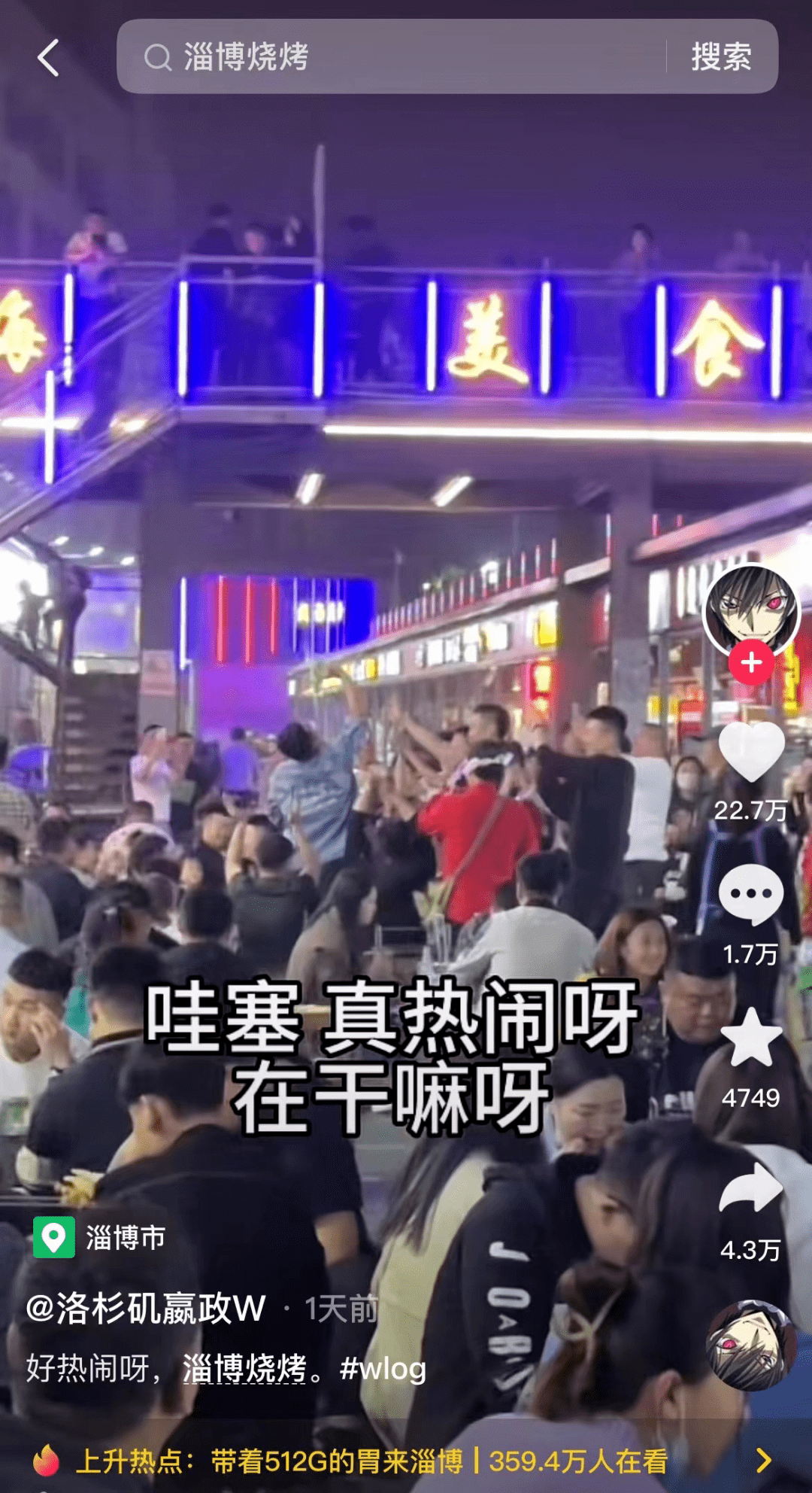 在社交平台上,从网红博主到普通网友,以及高亚麟、王楚然等明星,都变成山东淄博的“自来水”,27个微博热搜、18个抖音热搜,淄博烧烤几乎每天都挂在热搜上,连新华社都直播沉浸式打卡淄博。