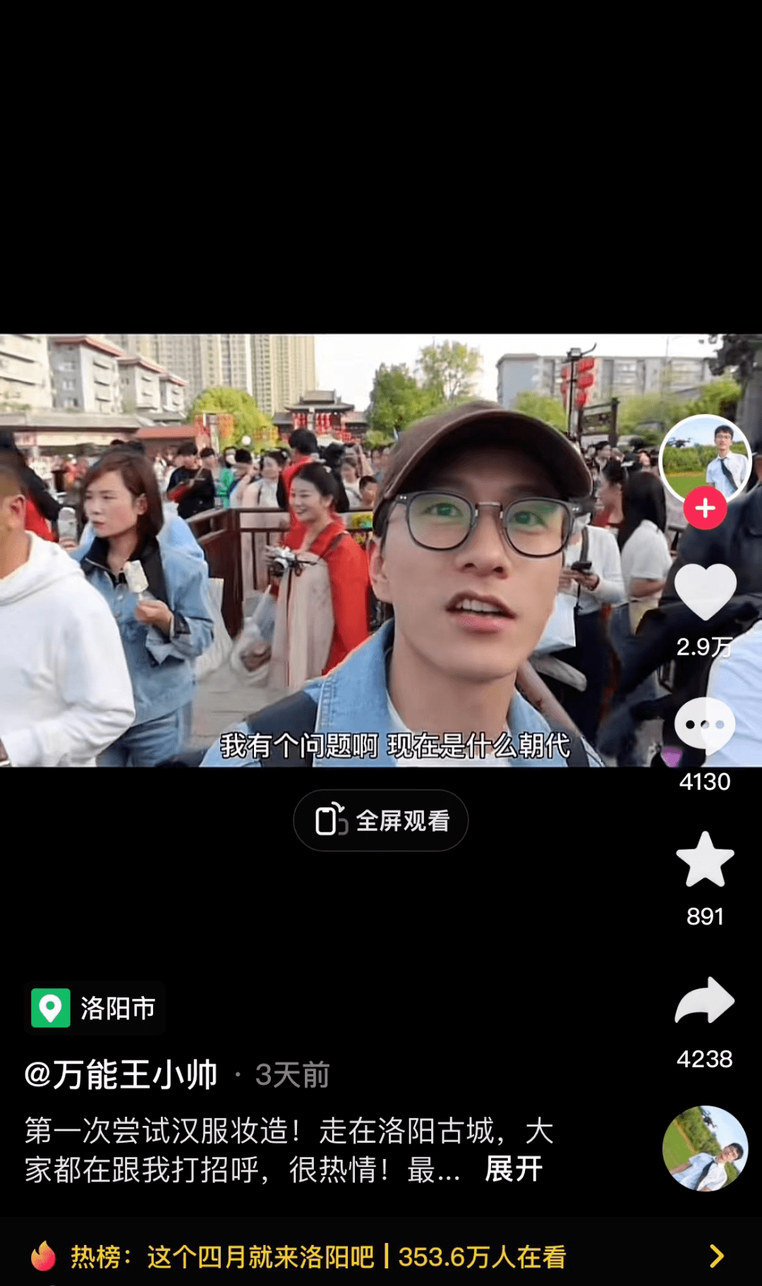 “家人们,我现在在洛阳,我有一个问题,现在是什么朝代?”有人在抖音视频中发出这样的疑问。