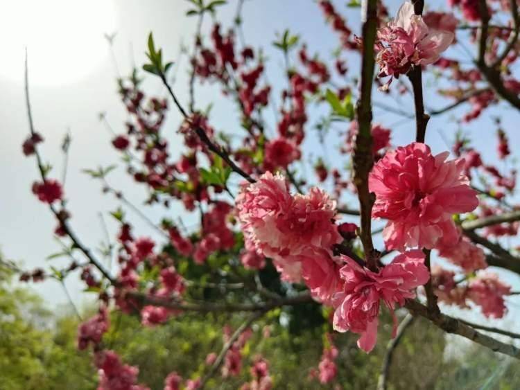 “满树和娇烂漫红,万枝丹彩灼春融。”除了樱花、牡丹,桃花也是非常吸睛,俏立枝头的朵朵桃花记录着浓浓春意,三四月,桃花开时,柳风拂面、绿树成荫,路边粉嘟嘟的花朵摇曳着身姿。桃叶细长细长的,似是美人的弯眉,桃花则娇若美人面,仔细观察着一株株桃花,古诗词里的文字自然涌上心头,“等闲识得东风面,万紫千红总是春。”