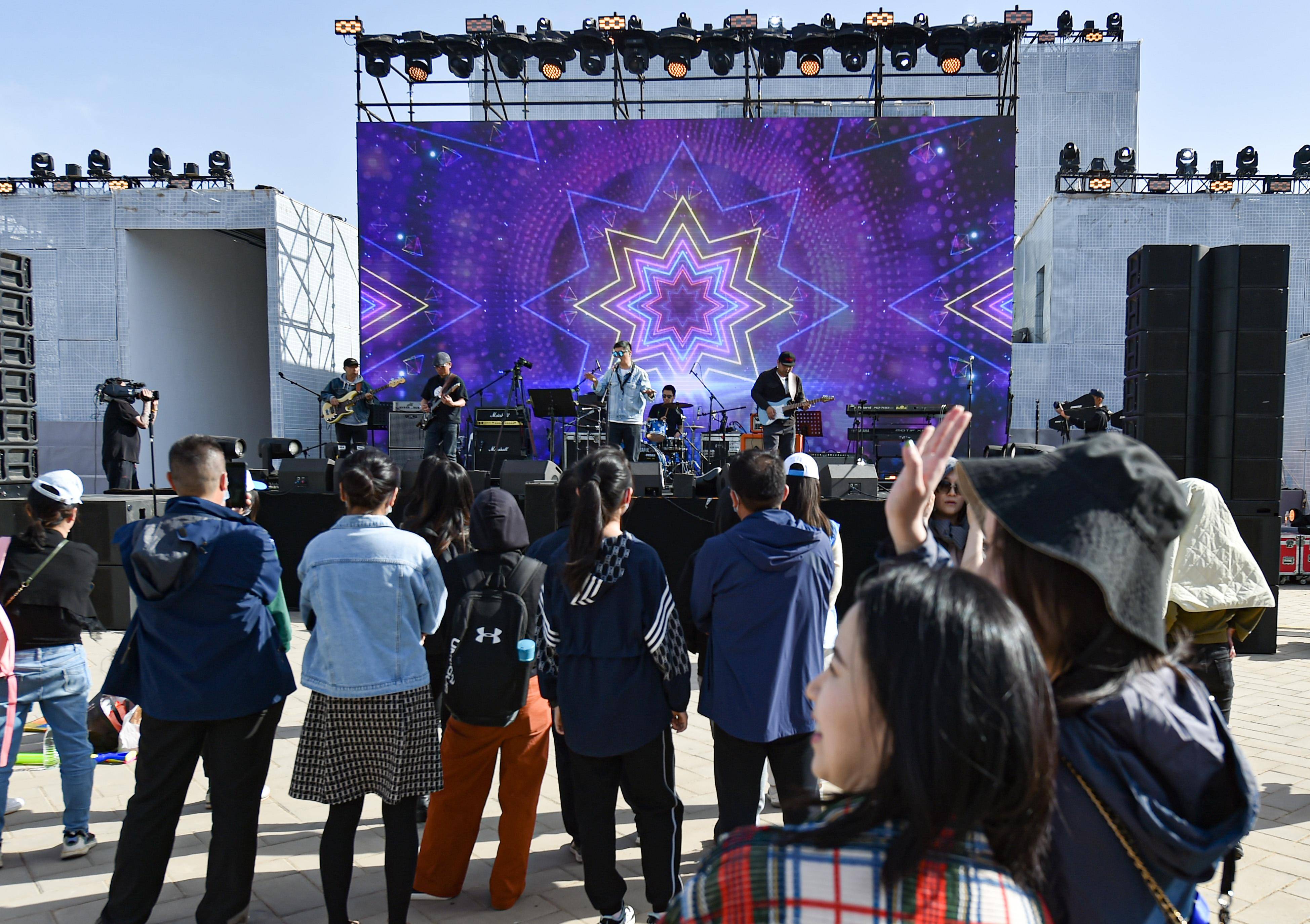 4月15日,游客在“2023下苑艺术生活季”活动现场观看乐队演出。 新华社记者 陈钟昊 摄