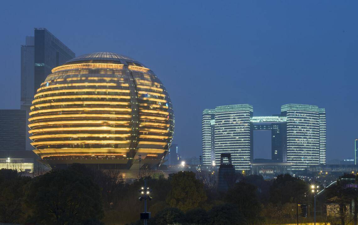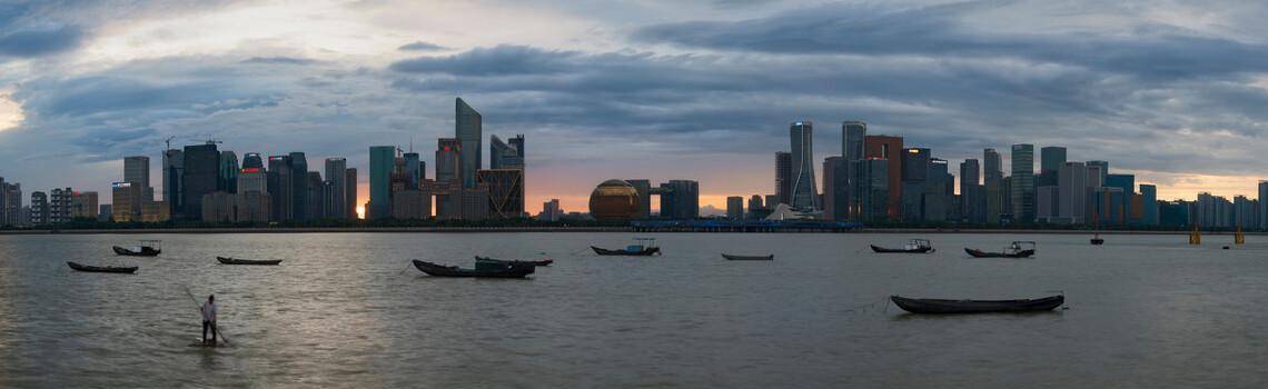 如果说西湖是杭州传统的一面,那么城市阳台则是杭州现代的一面。城市阳台位于江干区钱塘江畔。在这里可以眺望对岸滨江繁华。