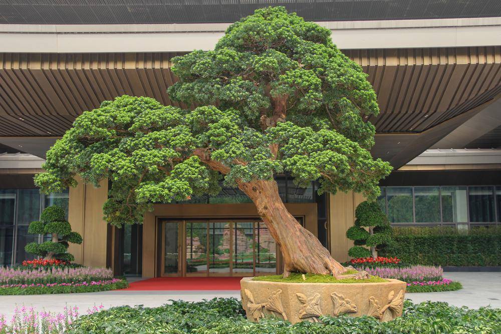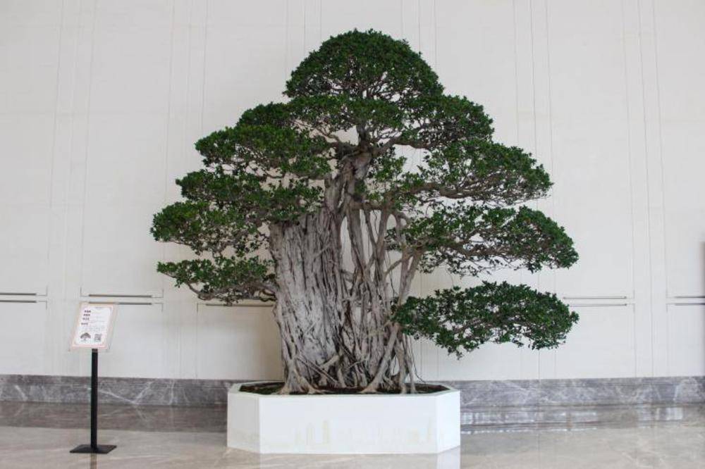 当中式建筑,遇到岭南盆景,一步一景,俨然成为一道独特景致。远远望去,迎宾厅、东门等多处可看到岭南盆景身影。