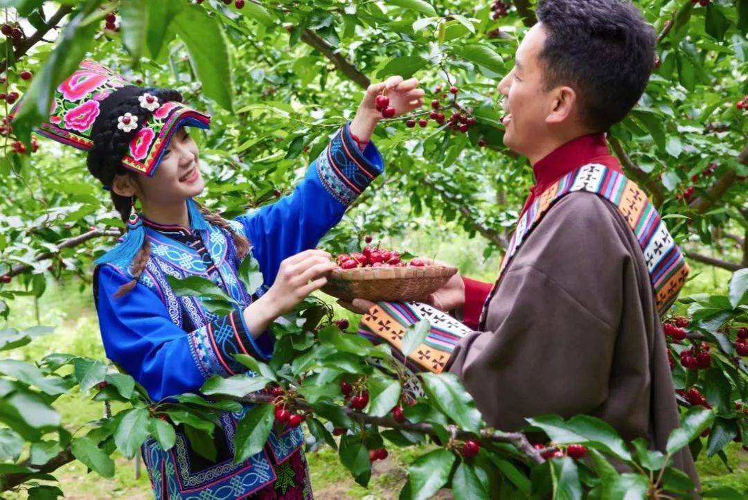 你也可以走进理县各大樱桃果园里,摘下一颗颗晶莹饱满的甜樱桃,品尝理县专属的甜蜜。
