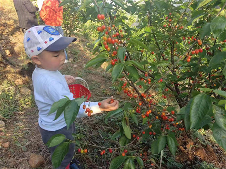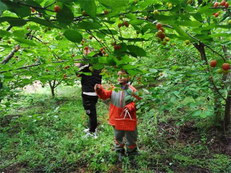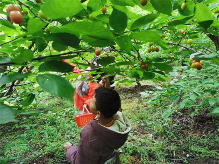 眼下,正是古达乡第一波樱桃采摘的时节,一树树樱桃鲜红欲滴,点缀在绿叶之间,在阳光的照耀下无比晶莹剔透、玲珑可爱。微风吹来,芳香弥漫,随手摘下一颗樱桃,轻轻放入口中,酸甜瞬间溢满舌尖,沁人肺腑,回味无穷。置身林中,亲朋好友相伴,一边赏着美景,一边吃着樱桃,唇齿沉醉,心旷神怡。