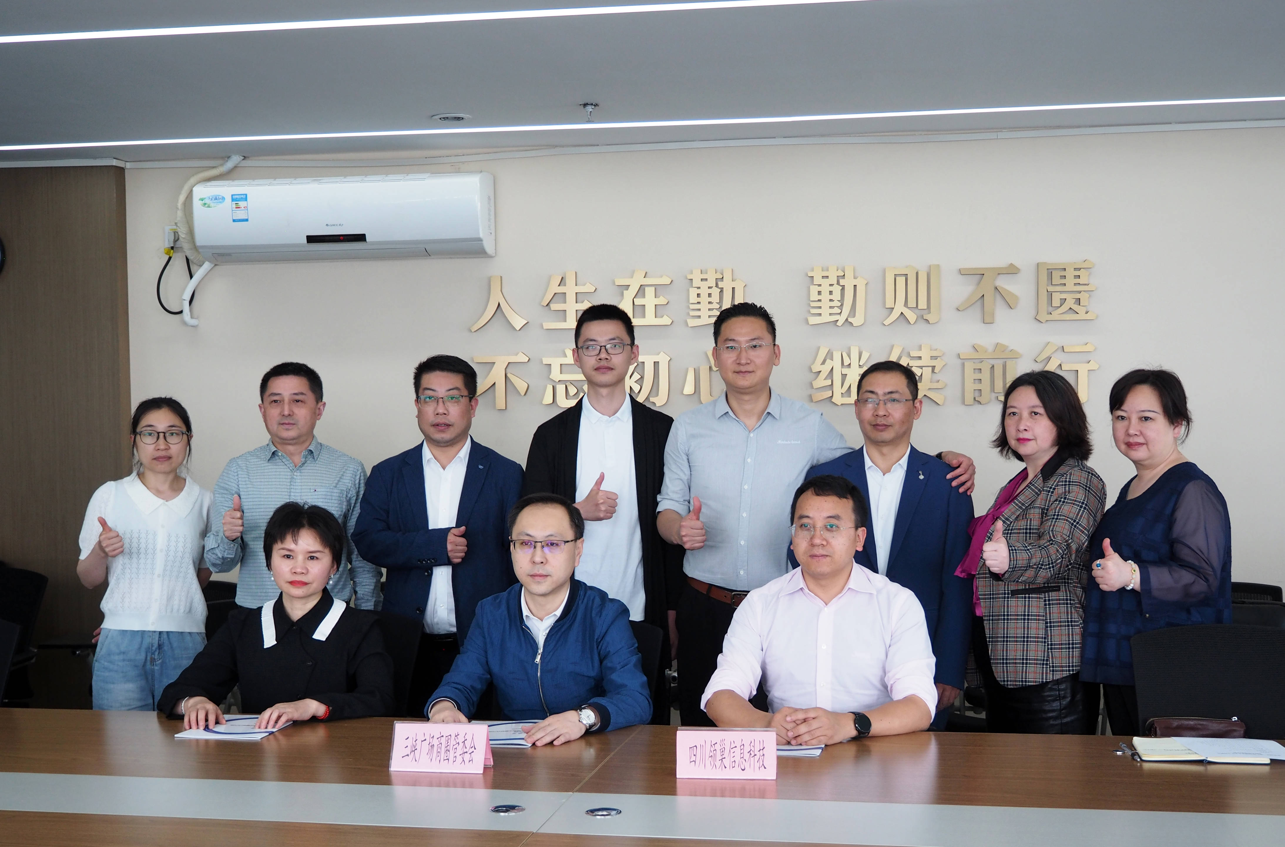 三峡广场管委会副主任徐思华;企业服务中心主任李东;管委会企业服务中心副主任高晓庆;领巢信息科技西南市场总监王春燕;重庆分公司总经理甘伟;技术总监王超;运营总监陈娟;市场总监蒋志红出席了签约仪式。