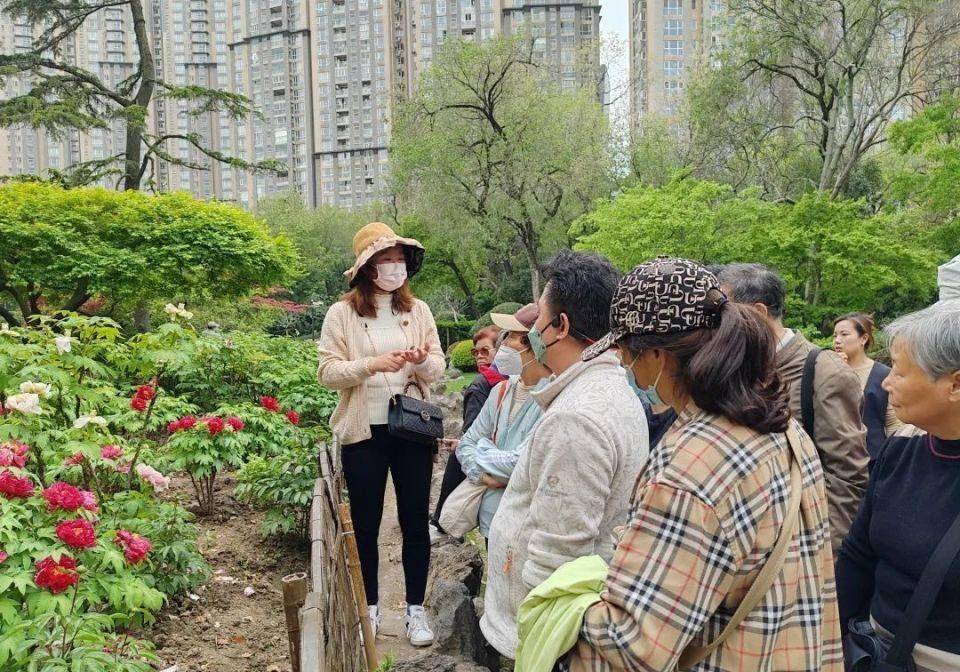 在中山公园牡丹园里,20多位参与活动的市民跟着上海辰山植物园园艺景观的工程师张颖逛起了牡丹园。张颖从牡丹的种类、种植历史讲起,全面系统地讲解了有关牡丹的各类知识,包括上海地区最适合种植的牡丹品种,牡丹和芍药的区别,如何挑选牡丹花种,牡丹食用和药用价值等等。