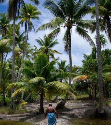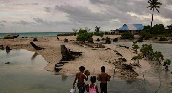 在基里巴斯临产似乎是件很危险的事,因为这里医疗水平和设施都非常有限。但是,这里实行公费医疗,全国有3所医院,包括中国援基医生6人。这里是南太平洋地区最低的国家之一。受雇人员最低年薪约12500元。图为被海水淹没的土地