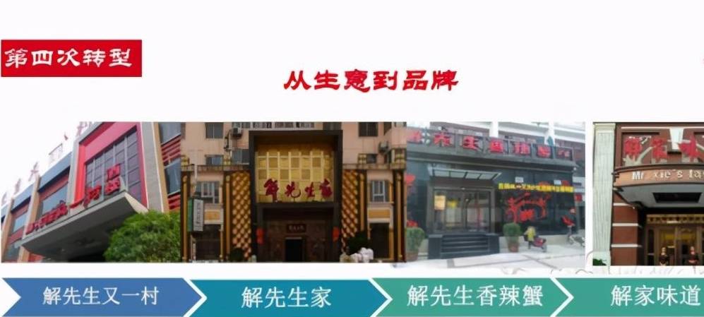 有了人才团队,解忠杰开了大大小小不同品牌的十几家店,比如解先生又一村主做烩鱼头、扒猪脸;解先生家专攻宴会;解先生香辣蟹,尝试新的品类,还有解家味道做家庭菜,基本每个品类都做了尝试。