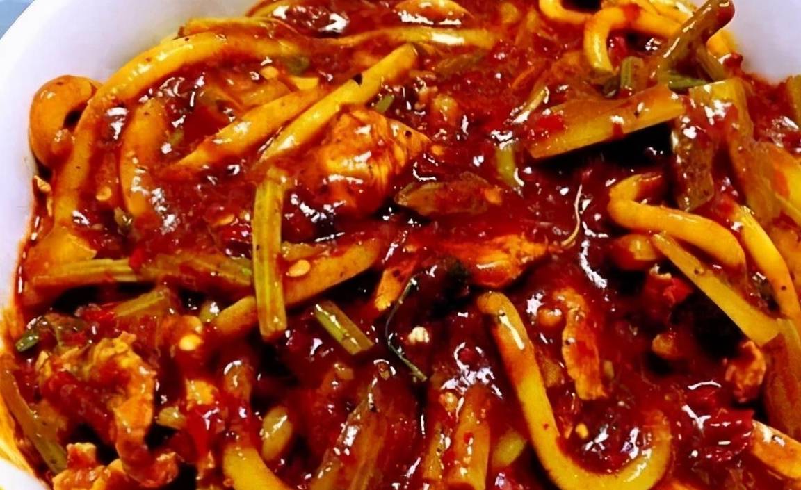 但是新疆炒米粉的爆火撼动了干辣椒的地位。