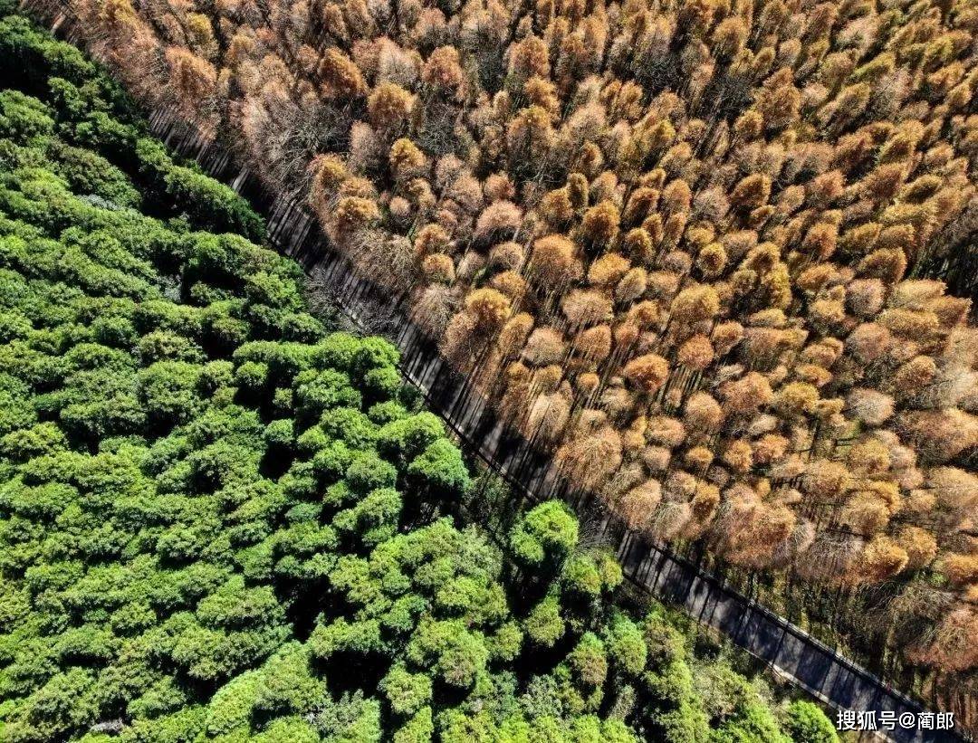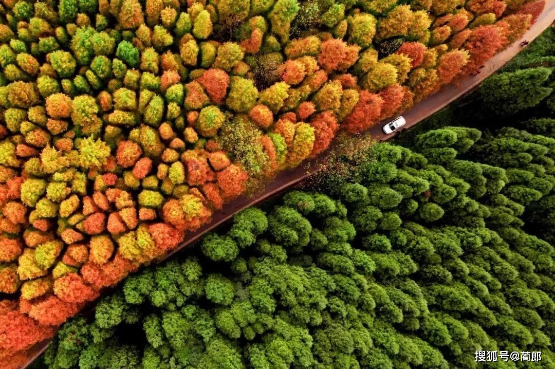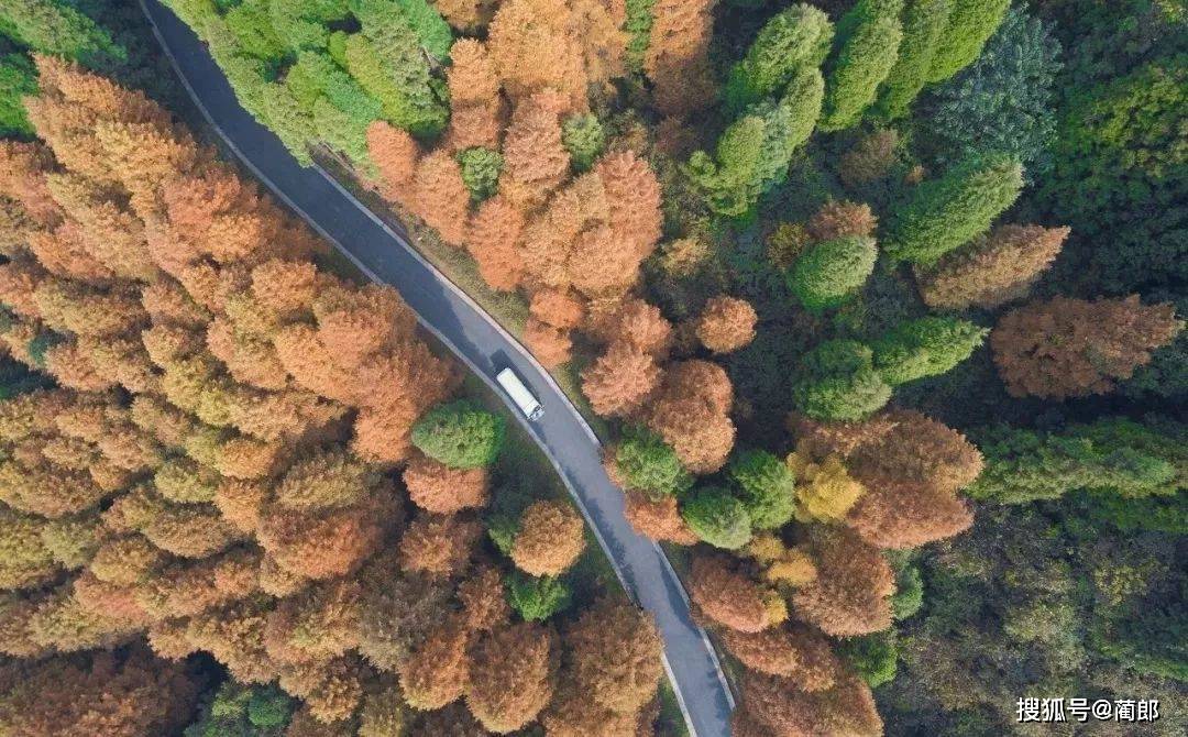 长长的盘山公路,一边是暖黄色的水杉,一边是墨绿色的柳杉,秋天的丰收之景和夏天的希望之色,有强烈的视觉冲击。