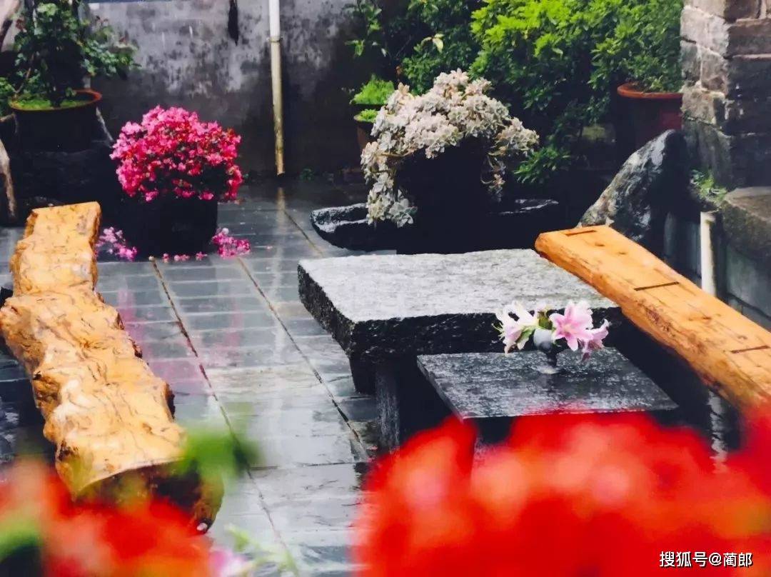 庵堂庭院内的搭配看似随意,却处处细致,各种漂亮的花卉和多肉植物,充满生机。