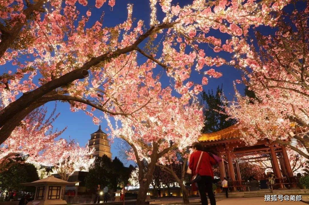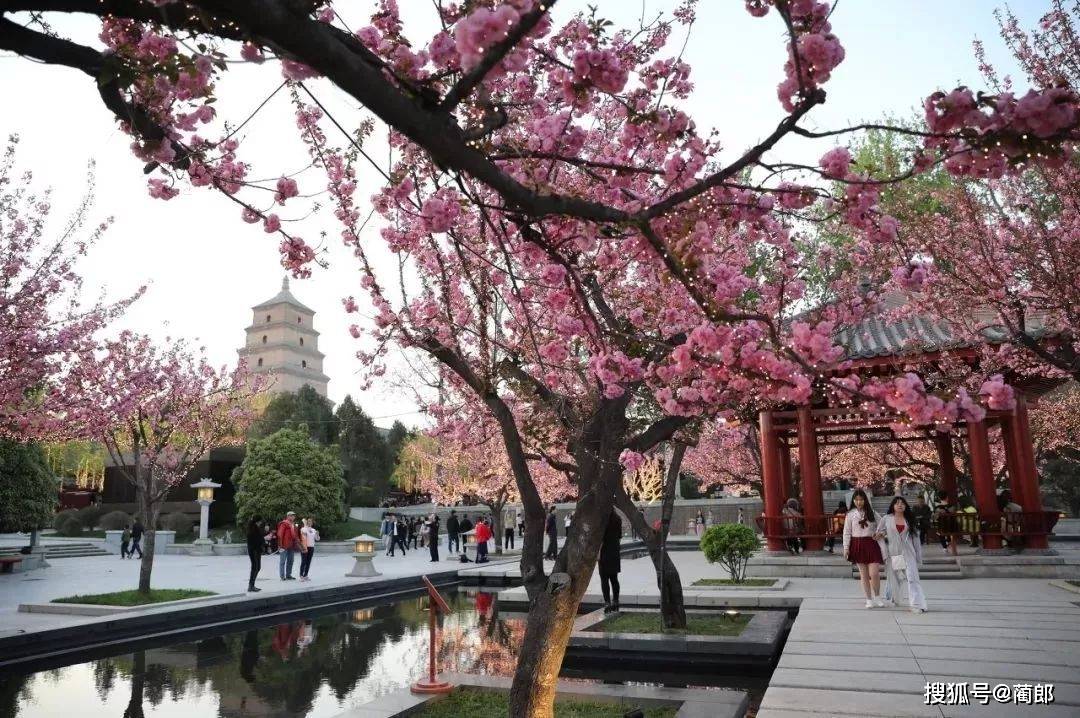 来过西安的人,一定看过大雁塔,但是你见过落樱满地、水里葬花的景致么?