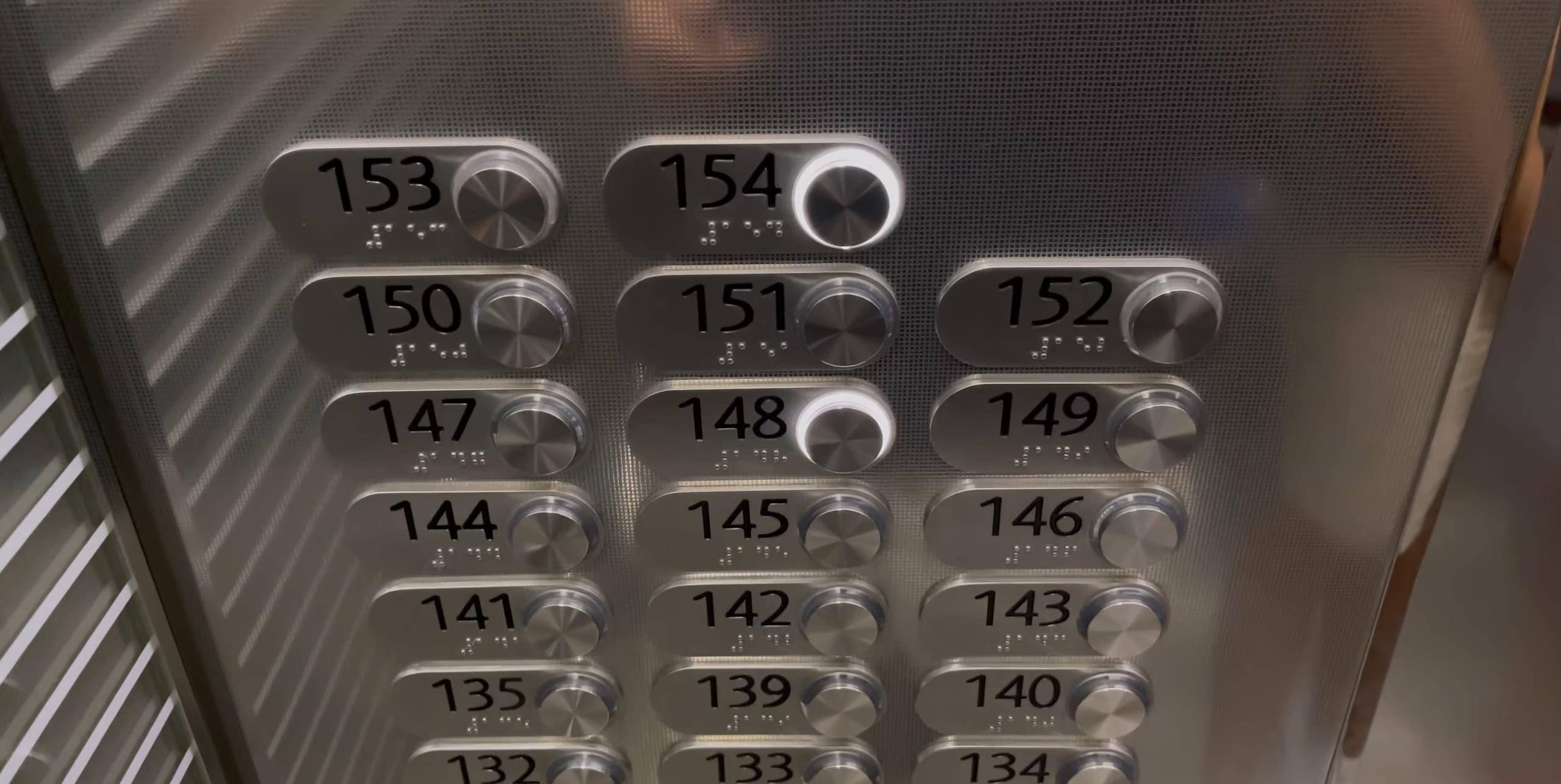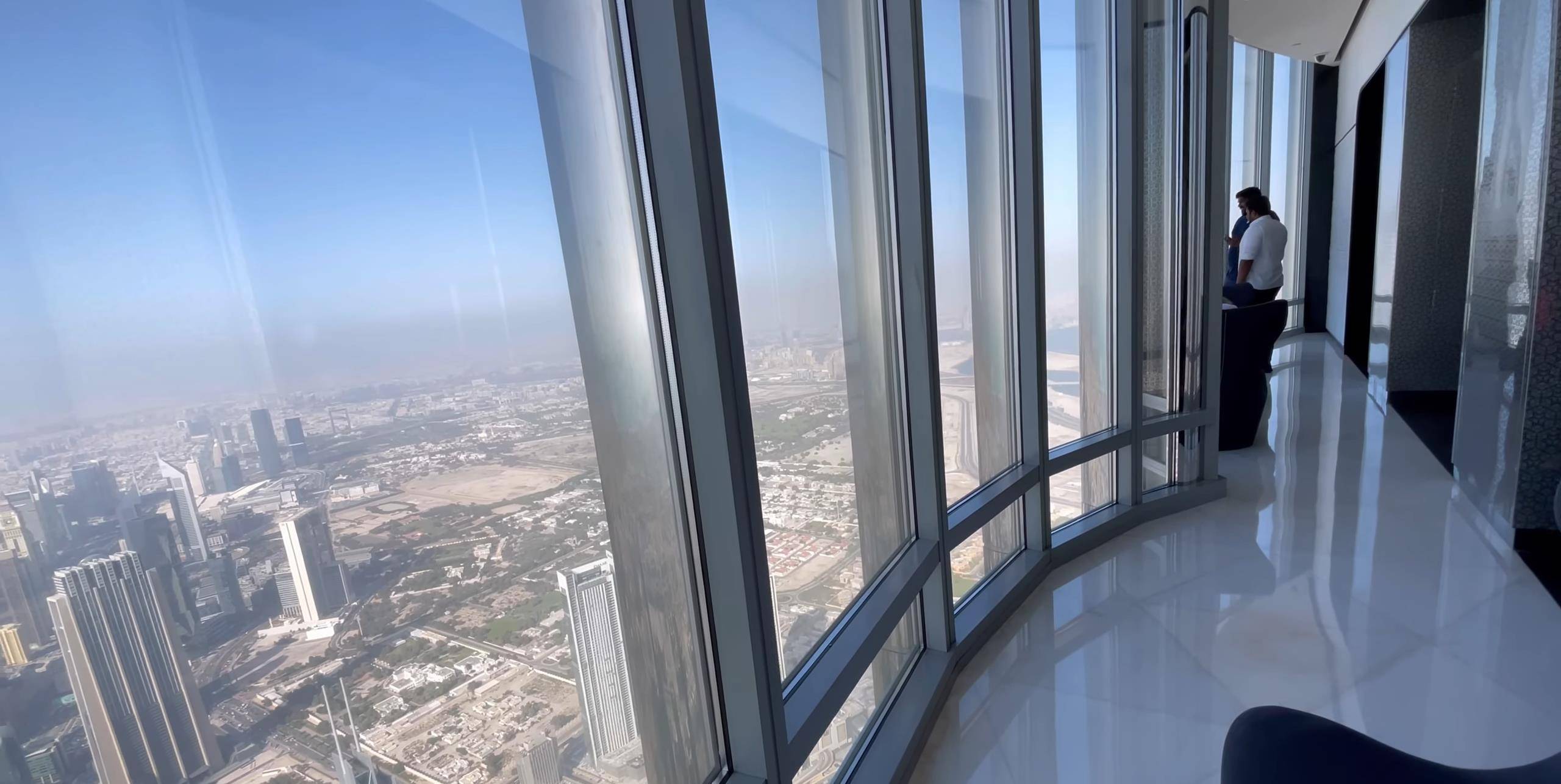 安全检查后,下一排是电梯。在日落前后的热门时段,您可能需要等待一段时间才能上楼。因此,通过安检、在电梯前排队和乘坐电梯向上平均花费 20 到 30分钟。到达电梯后,您会以不低于每小时 42 公里的速度上升。特别注意电梯里的楼层柜台,超级快。哈利法塔的电梯是世界上最快的电梯之一,因此您很快就会到达 124层。