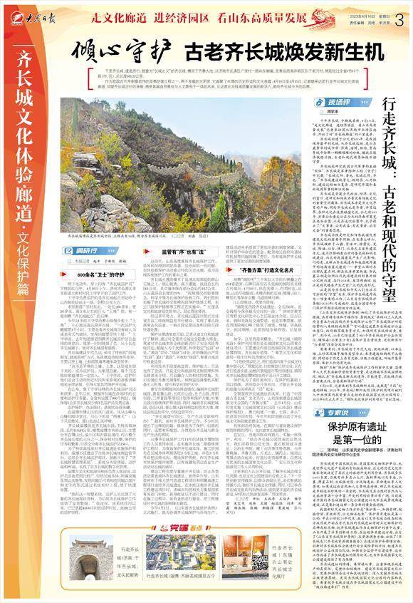 作为我国古代早期最宏伟的军事防御工程之一,两千多载的光阴里,它凝聚了丰厚的历史积淀和文化底蕴。4月10日至4月15日,记者随采访团行走齐长城文化体验廊道,仰望齐长城古朴的身躯,感受其融自然景观与人文景观于一体的风采,见证遗址沿线高质量发展的新活力,聆听齐长城今天的故事。
