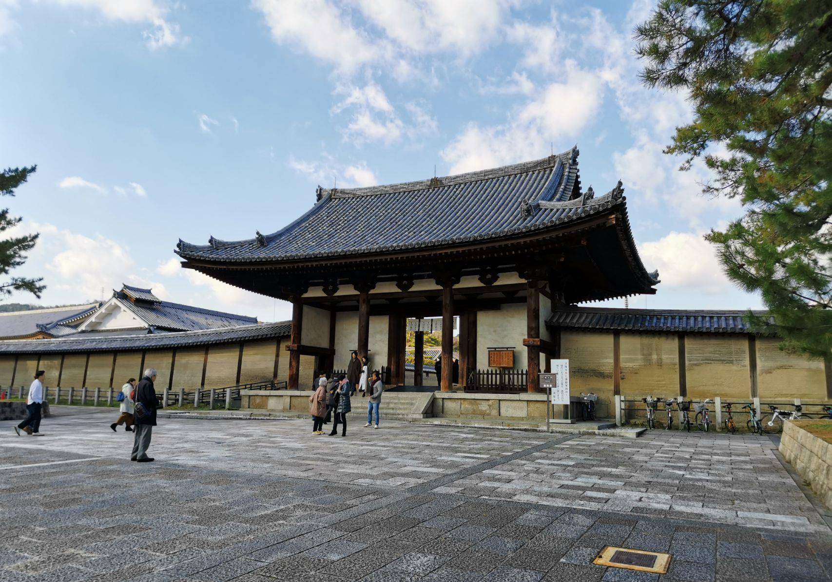 走过法隆寺参道,最先进入视线,在最外围迎接来者的南大门就是座国宝了。不像日本其他地方常见的华丽楼门,南大门形式低调,充满奈良的风范。
