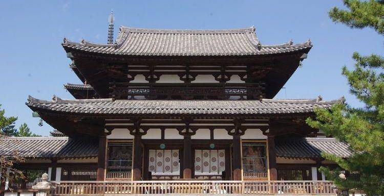 金堂是全境最古老建筑,样式与常见受唐宋风格影响的日本寺院有着不小的差异,保留了飞鸟时代的特征。1949年1月26日,一场无名火从金堂内窜起,堂内的壁画惨遭严重损毁。这场悲剧催生了日本的文化财保护法,也让1月26日被定为日本的文化财防火日。