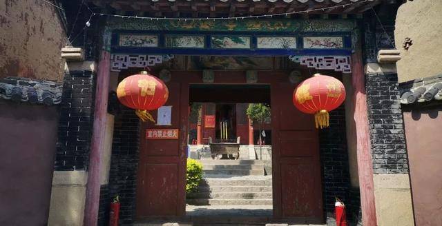 萌山寺的第一个院落是大雄宝殿,大殿在9级石阶上,分为三间殿堂,正中间的是主殿,在大殿内供奉的是释伽牟尼的木质雕刻像,左右两侧是文殊、普贤两位菩萨像。东西两侧是香火池,殿前有6根红色的立柱,整个院落的建筑高大宏伟、金碧辉煌。右侧的香火池旁边有座阁楼,名为文昌阁,沿着楼阁的青砖楼梯进入阁楼之上,阁内供奉的是文昌帝君,是保佑读书识文的神明,也是古代读书人、求取功名之人最尊敬的神明,受到民间的供奉。