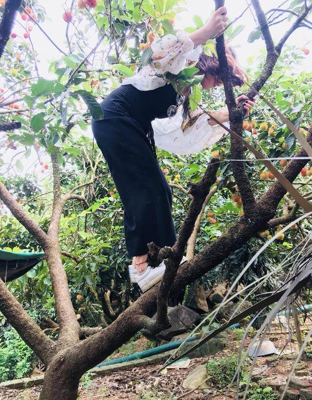 这是我们同行的妹子,为了吃到最甜的红毛丹,竟然爬到了树上!实际上,当时的情况是,一群摄影师想拍个爬树的镜头,可惜没有模特,只能把我们一路上最为活泼的妹子香妃拉过来。看她爬树也是挺欢乐的啊!
