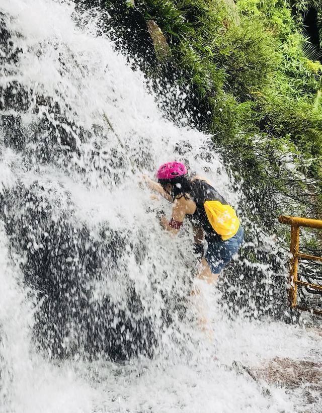 如果你来呀诺达,说实话我是不太建议你去爬山的,毕竟夏天爬山还是很累的。但是如果你又有爬山的冲动,那该怎么办呢?就像图中的妹子那般,可以玩水。呀诺达的玩水和在三亚玩水不同,你需要在教练的带领下,然后完成一些任务,最终你会发现不虚此行。当我们玩完结束后,妹子们对我们这些没有玩水的人说了句太可惜了。其实我们也觉得是这样。