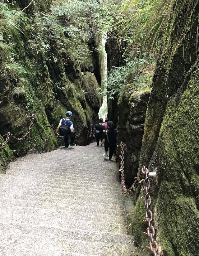 如果你恐高,来三清山的一线天就要小心了。这里的台阶十分陡峭,一眼看下去,总觉得好像要摔倒似的。恐高的朋友最好还是不要走这里了。比较惊险。