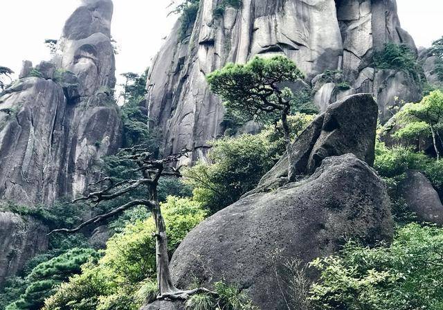 在三清山,松树也是随处可见。个人觉得这两棵树最有意思,一颗枯死,一个生机勃勃,真的是生死两相依!