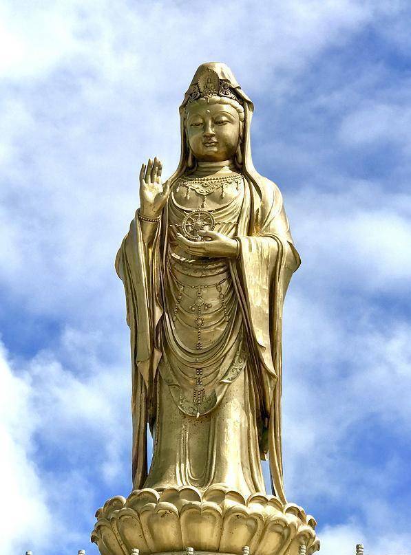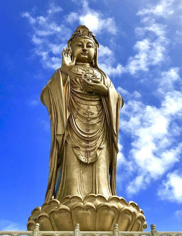 当然,普陀山名气最大的莫过于南海观音,而来普陀山,不去南海观音像参拜南海观音,那就是白来普陀山了。这尊高33米的南海观音像是无数佛教信徒最为尊敬的神像。来到这里,你会发现很多人都在这里虔诚的参拜。而且,这尊观音像是普陀山岛上唯一一座可以拍照的观音像。如果你去普陀山,寺院内的观音像不要拍照,要尊重别人的信仰。如果想拍照,就去南海观音像。