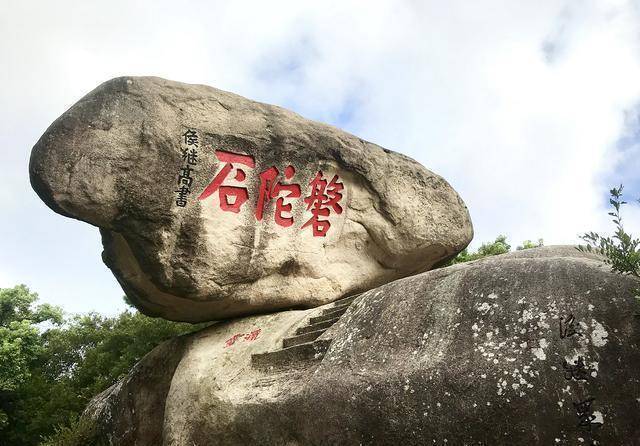 从普济寺,往山头走去,你会看到普陀山最大石刻字心字石,一块石头上,一颗红“心”位于其上,有一种说不清道不明的意境。走到山顶,在西天景区,最让普通游客停下脚步的,莫过于最奇怪的石头。这个石头名为磐陀石,重400吨,位于另一块石头之上,中间只有很窄的一部分。远远望去,仿似要掉下来一般。“疑天外飞来,似神手搁置”,说的就是这块石头。
