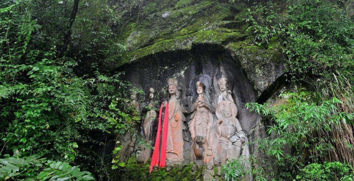 灵岩山灵岩寺,寺因山而得名,曾经也是“灌县十景”之一,其全名应该叫做“灵岩观音寺”,顾名思义,山中的佛像也大多是观音像,其具体始建年月不详,但其他的地方志却是记载其“始建于北魏孝文帝年间(499年),后在唐贞观年间重建,历朝历代几经废修”,如果是从北魏算起来,此寺的历史也有个1500多年了,也算得上是历史悠久了,只是现在藏在深山无人知。