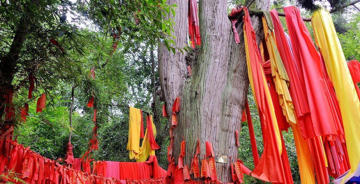 而在寺庙大雄宝殿的西边,还可以看见三棵非常奇特的树,说是三棵树,其实也可以算是一棵树,因为它们的根部是连在一起的,只是主干分开,慢慢得就长成了三棵树,当地人说,这是代表着观音菩萨三姊妹永结同心。而灵泉寺里奇特的树还不止这一棵,在山顶上还有一棵“观音柏古”,它跟之前的“连根树”差不多,但是不同的是,它是在主干长了2米长后才分开,然后再长成了三棵树,它们便是灵泉寺的第二绝“三姊妹树”。