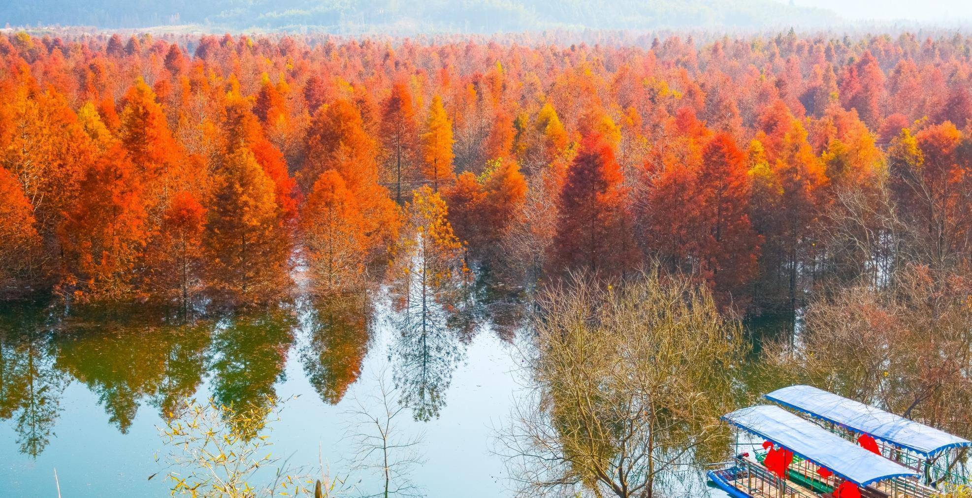 而来青龙湾必须去的地方就是落羽杉湿地公园了,这里种植着2000多红杉树,整整齐齐的长在水里,非常的壮观,特别是到了秋季的时候,这些红杉树远远望上去火红一片,与碧绿的湖水交相互映,美不胜收,颇有点北疆的喀纳斯风情,每年都有很多摄影爱好者前来拍照,闲来无事,坐着竹筏游荡其中,也不失为一件美事!