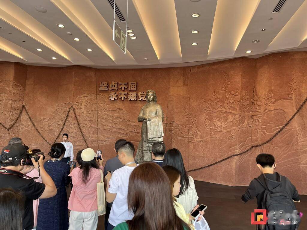 上午九点,媒体团来到江姐故里红色教育基地。大家从江姐生平陈列展开始参观,了解江姐辉煌壮丽的一生。
