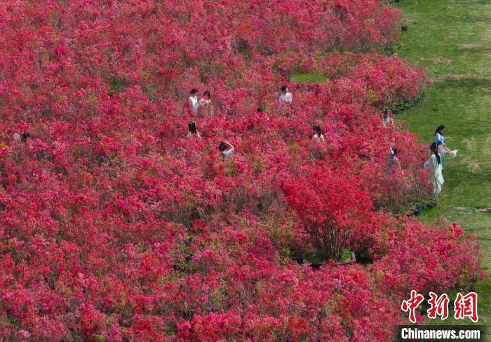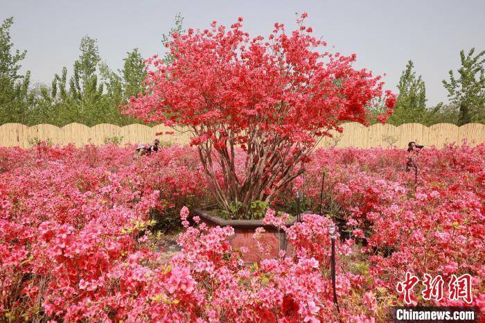 杜鹃绽放映长空,花海无垠耀眼红。4月15日,主题为“绿色新淮安、方寸秀雄奇”的第四届中国·淮安精品盆景展暨第二届淮安杜鹃赏花节在江苏省淮安市古淮河畔瀚悦园拉开帷幕,二百余盆风格各异的精品盆景和“运河之都 百里画廊”古淮河主题景观带齐亮相,呈现了一幅花在园中、人在画中的春日画卷。