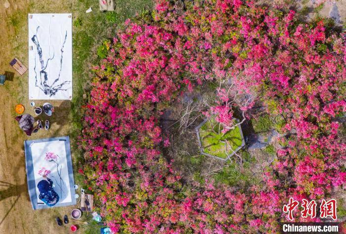 杜鹃花开艳丽夺目,吸引摄影爱好者前来拍摄。 泱波 摄
