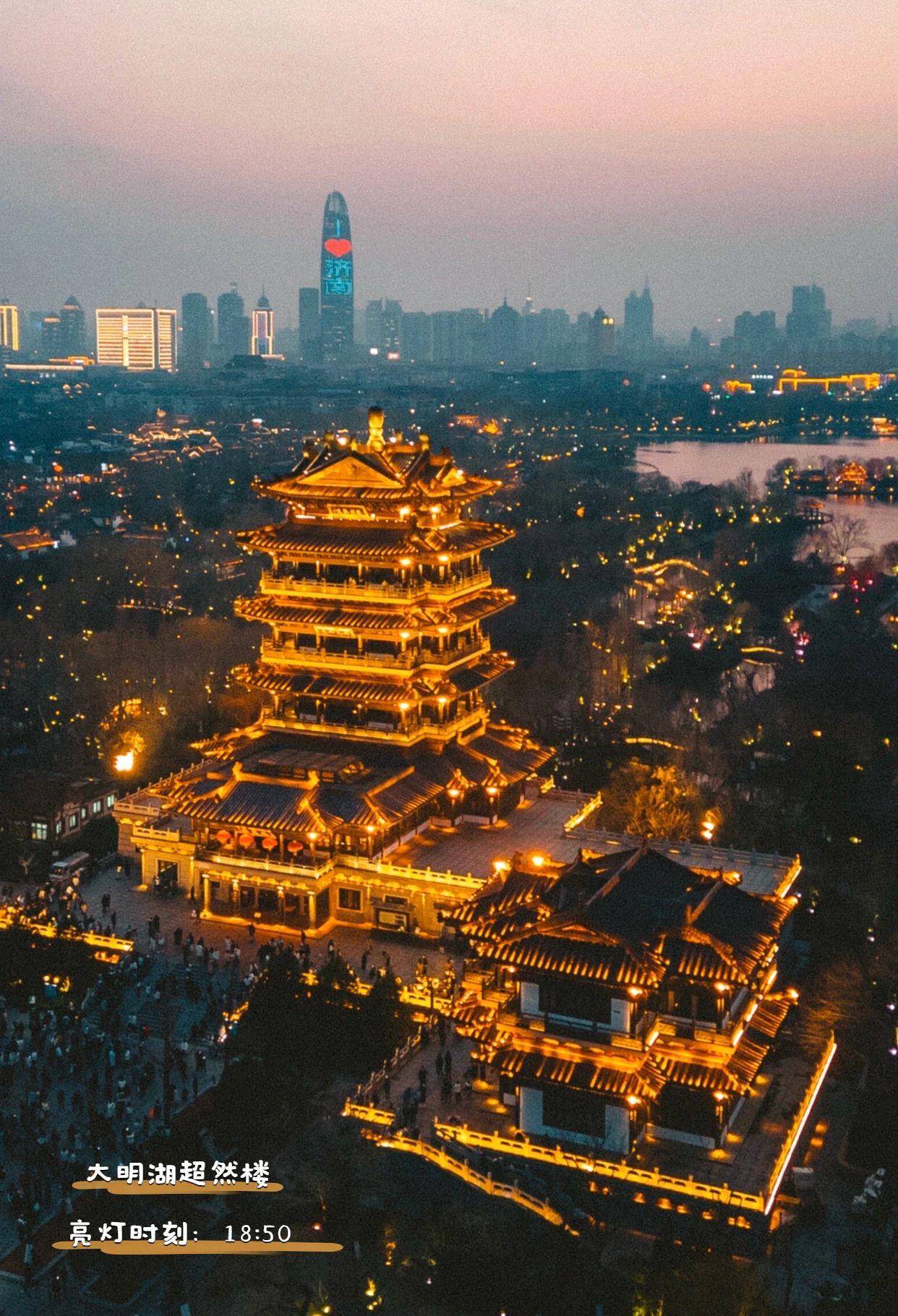 每当太阳落下,夜幕降临,随着人群的一声声惊叹,环绕着超然楼的灯光层层亮起,济南正式进入夜的世界……济南的夜晚,有数不尽的精彩。约上三五好友一起漫步街头,体会济南霓虹的光芒,邂逅济南不一样的美。