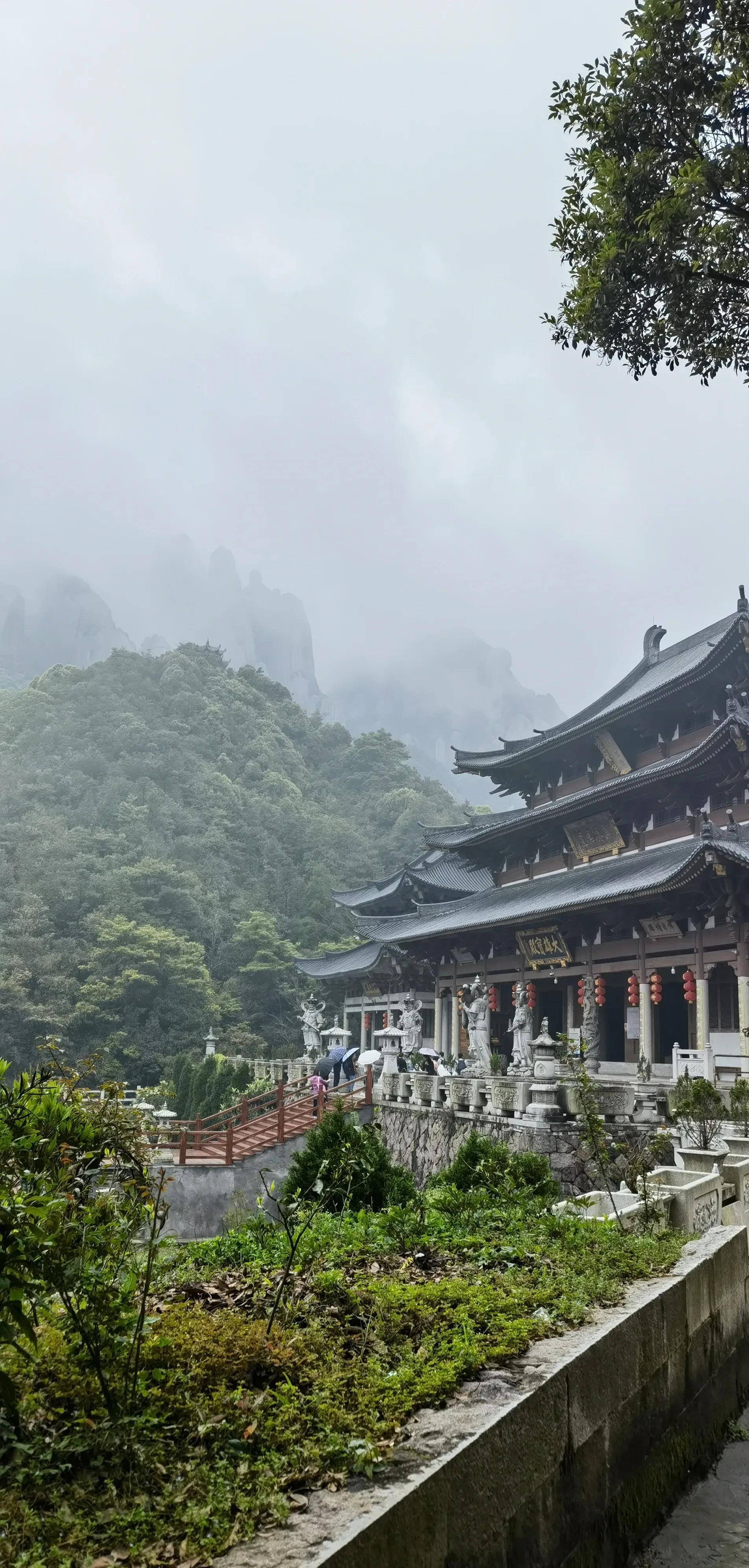 最后要带我们去位于太姥山景区中,他家的丹井茶庄一坐,顺便又看了一次太姥山。2018年来时,艳阳高照,太阳晒的人无精打采,今天却是另一番清凉感受。天气阴沉沉的,山雾一缕缕一团团飘来,确有了几分海上仙都的仙境。顺着山中石阶,一路经过兴国寺、萨公岭、太姥山之心等景点,山雾越来越浓,一会儿还下起了雨,整个大山被浓雾包围,所有的山峰皆隐入雾中。