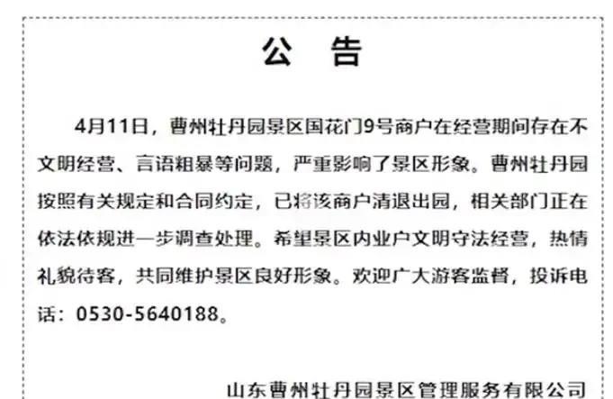 山东菏泽曹县牡丹园,4月11 日,发生了一件令广大消费者热议的一件事。