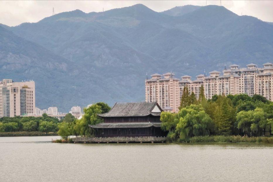 据介绍:灵湖位于浙江临海,因风景优美,成为了旅游胜地,湖水面积已达1200亩。湖中有一湖心岛,游客可以乘船去湖中心。